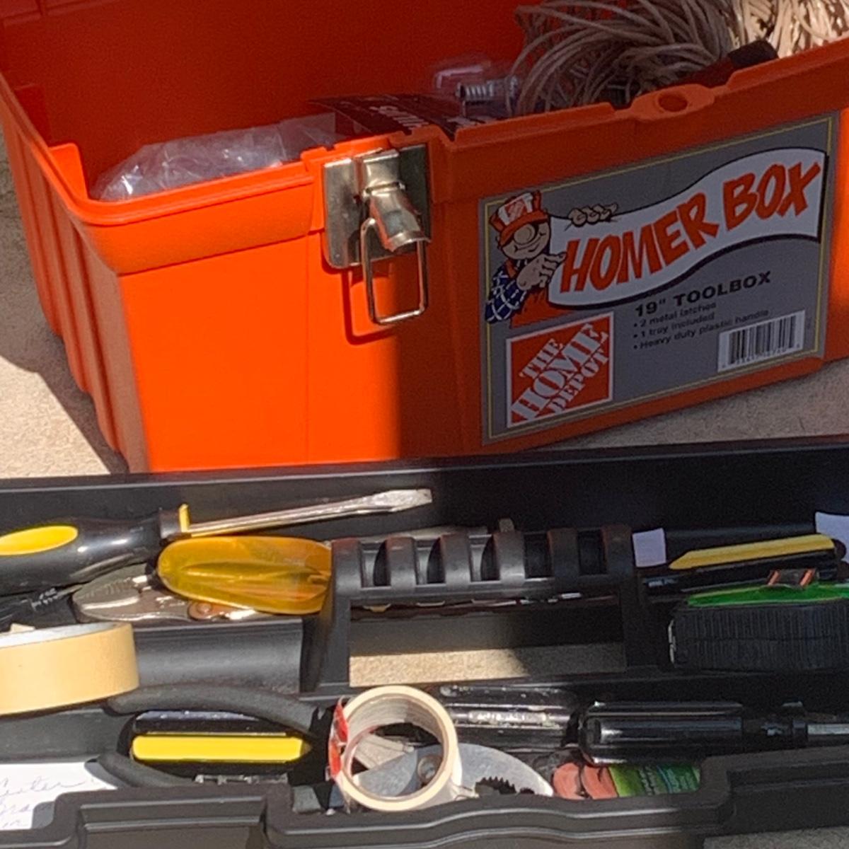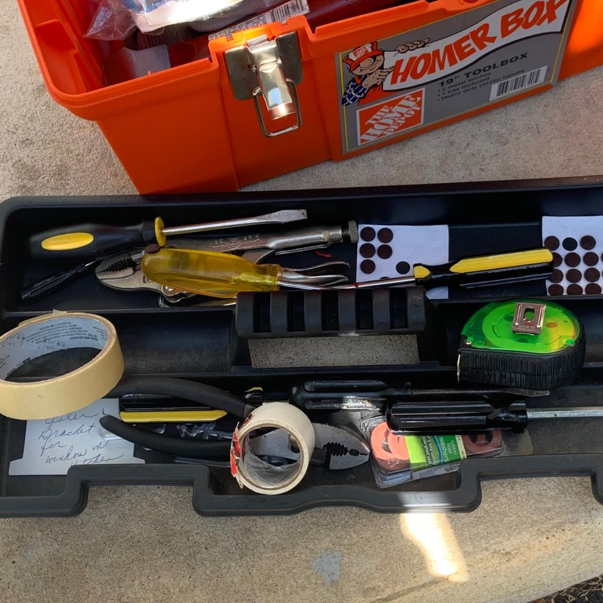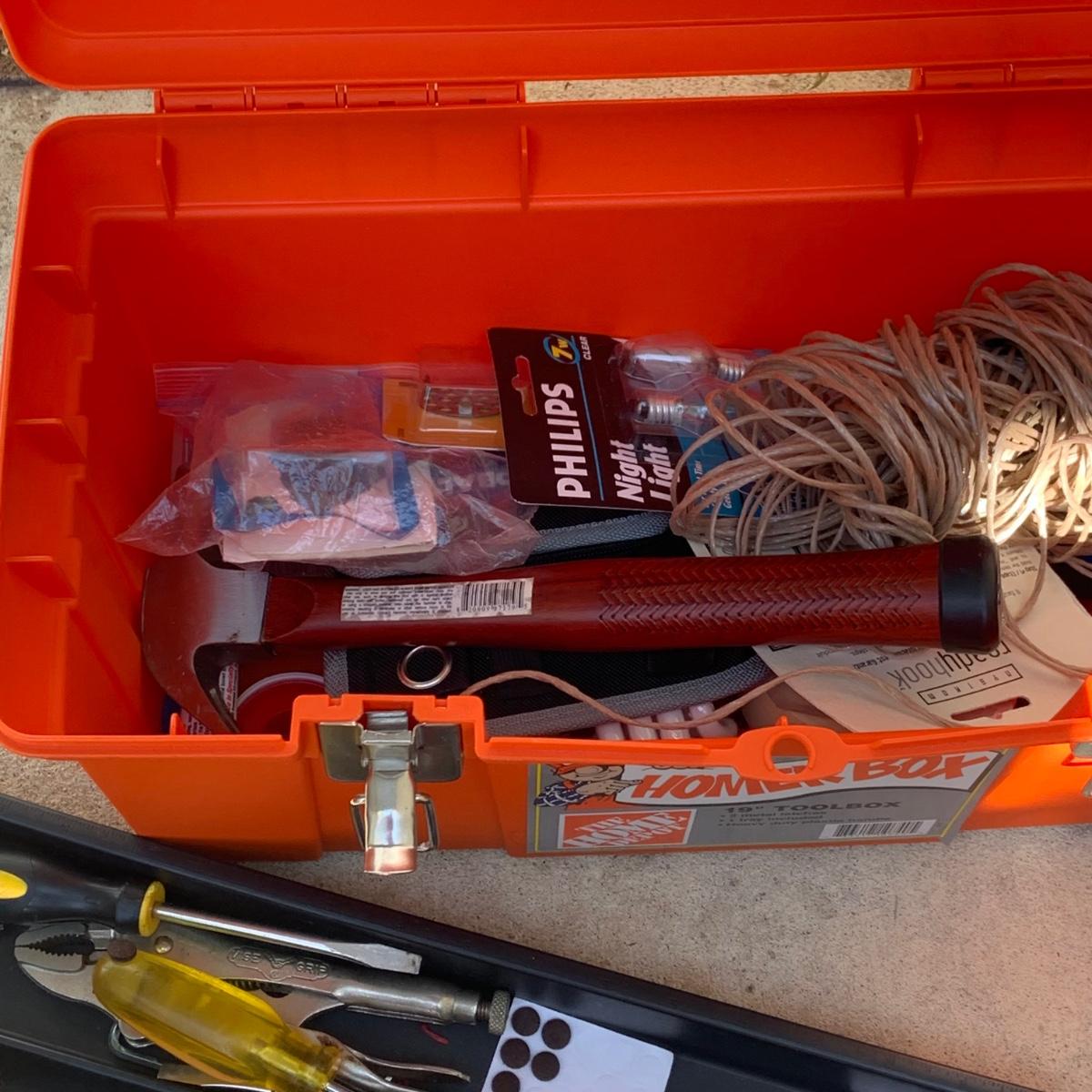 LOT:277G: Tools - Black & Decker Drill, Home Depot Toolbox and Assorted Tools and Such.