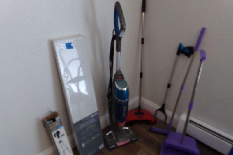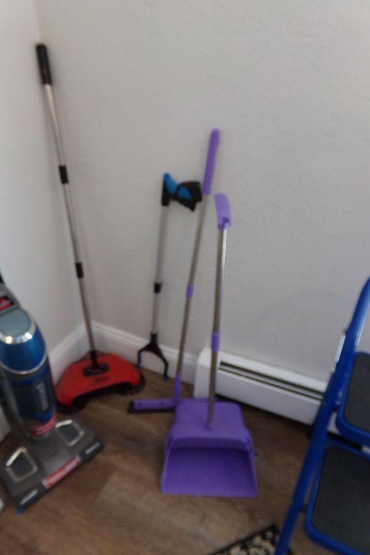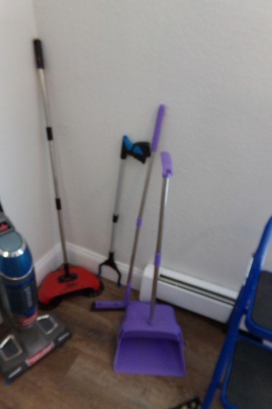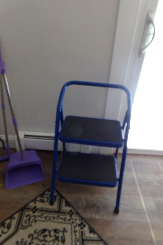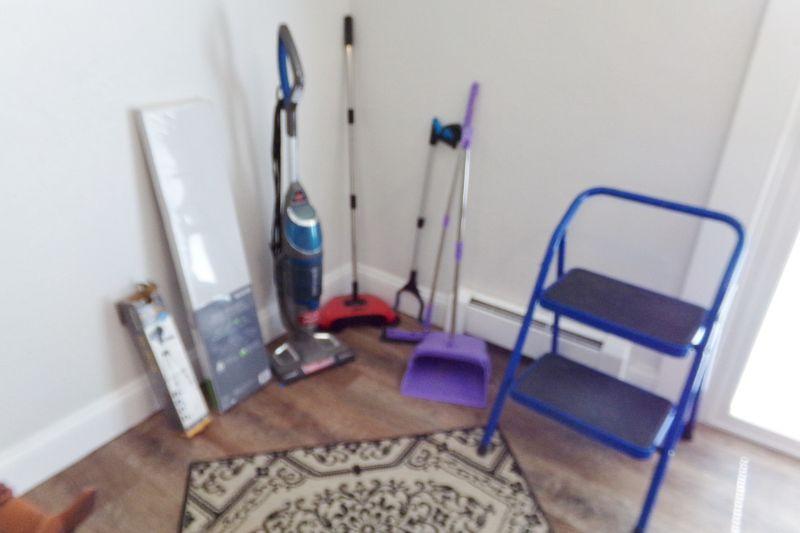 STEP STOOL, BROOMS, SHELVING, THROW RUGS AND MORE