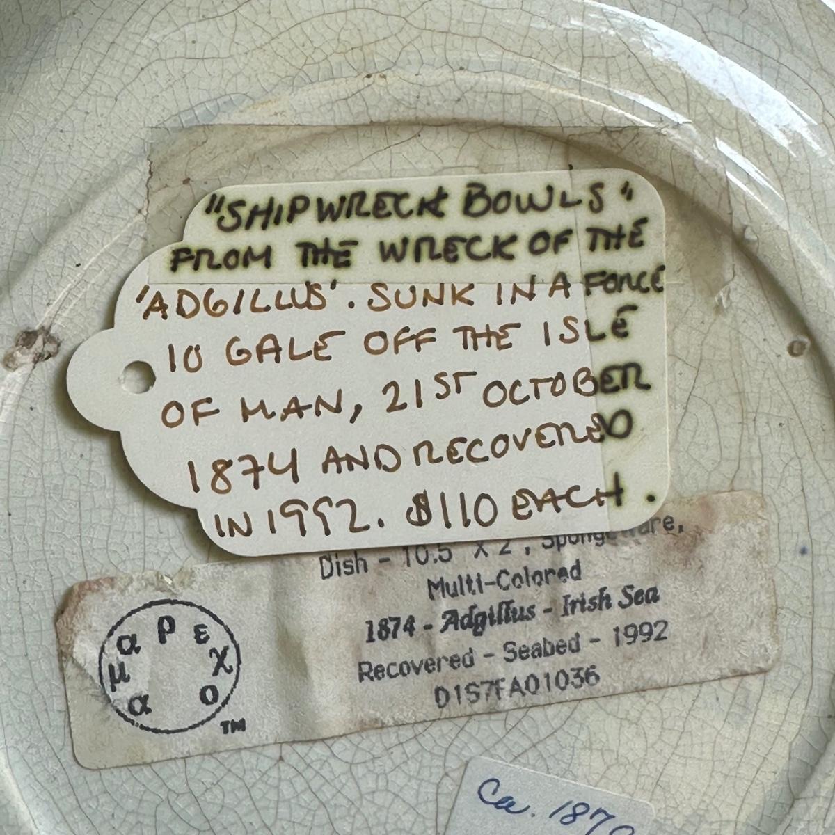 LOT 93G: Argillus 1874 Shipwreck 1872 Plate recovered off seabed 1992. Spongeware
