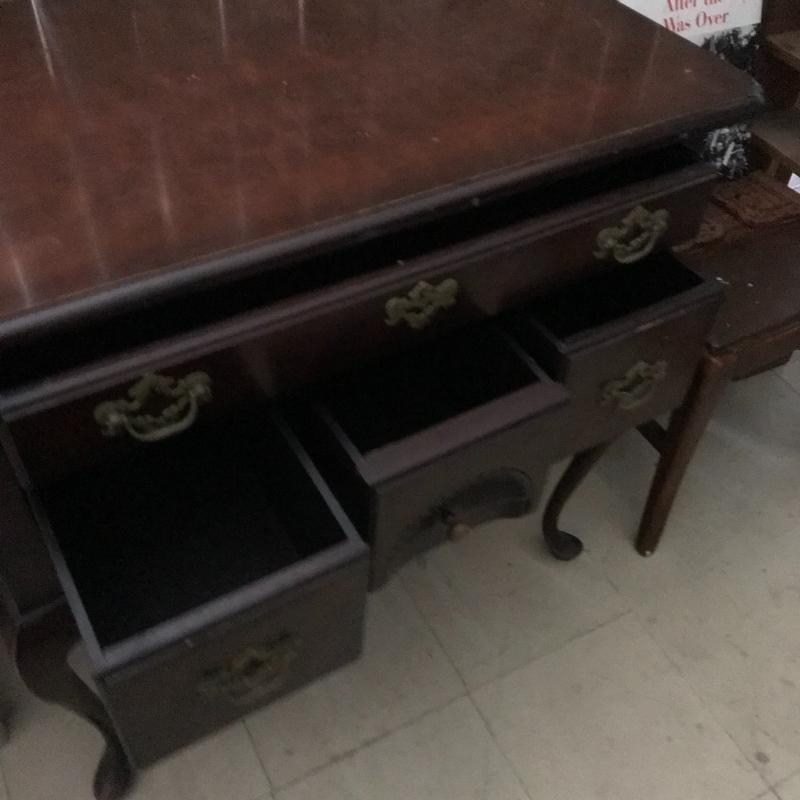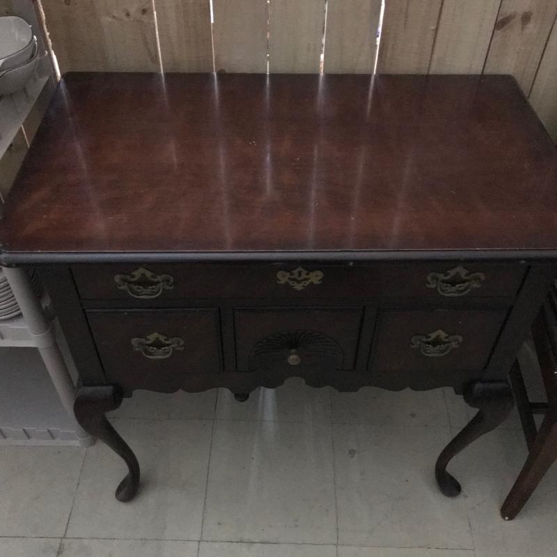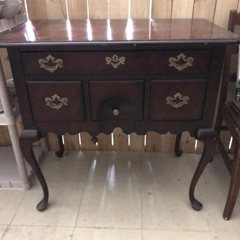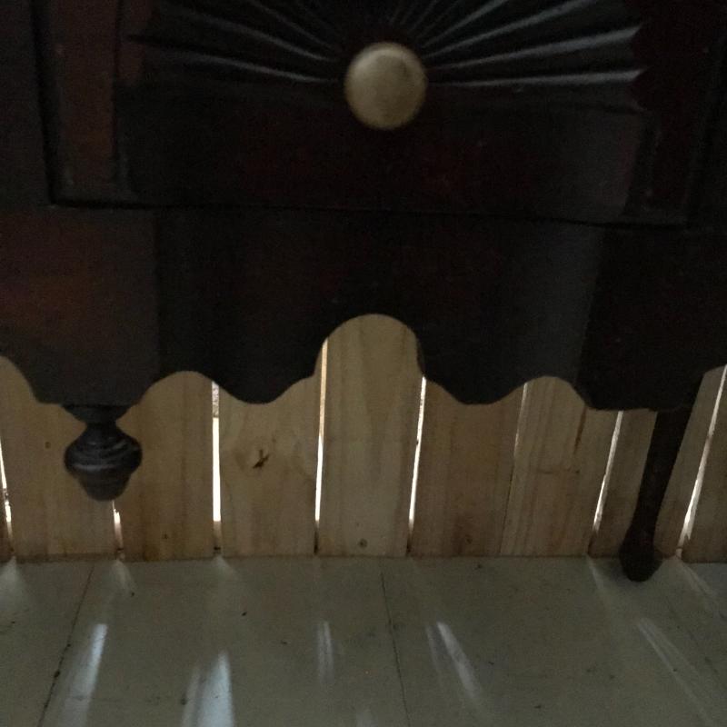 Unit measures 35” x 21” x 32 and has a couple scuffs (see pics). Also a missing piece on the bottom right side to match drop knob-like accent. Lot is available for local pick up in Maggie Valley, NC only.