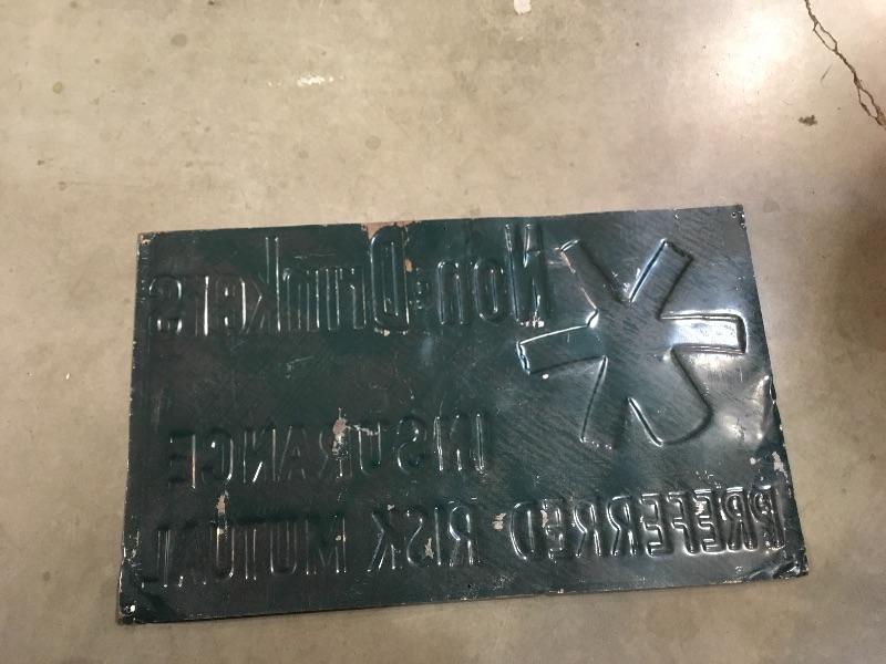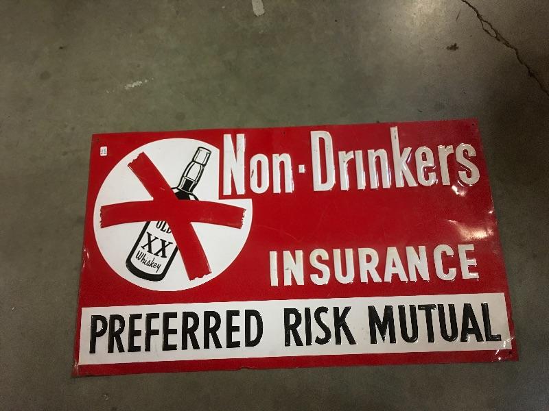 Lot 94 Vintage Metal Advertising "non-drinkers" insurance sign