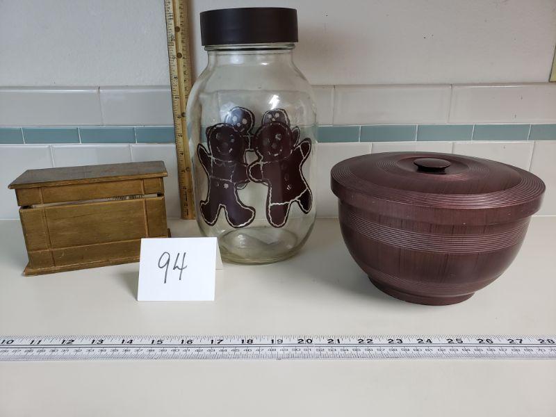 Gingerbread People Cookie Jar, Recipe Box, & Mid Century Japanese Bowl