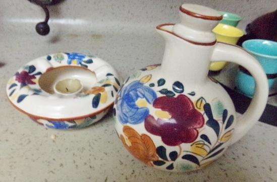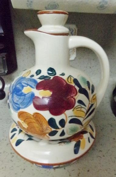 HANDPAINTED CARAFE ON WARMER FROM PORTUGAL