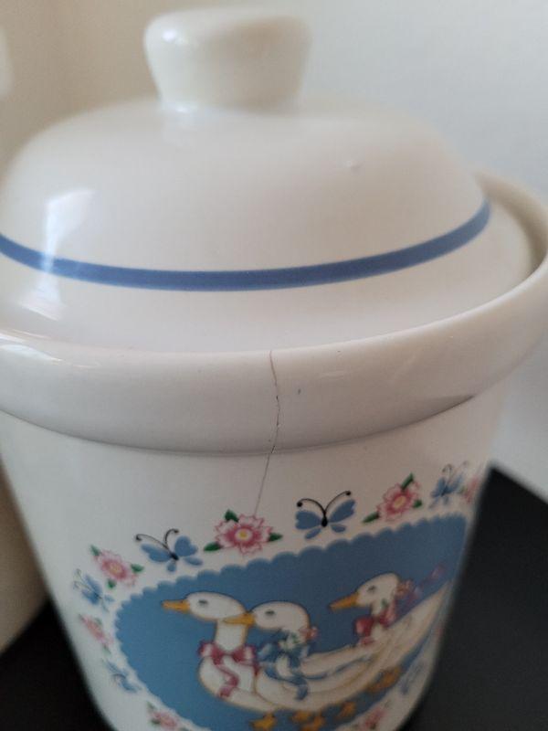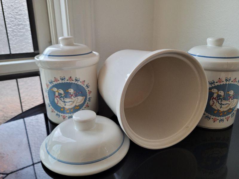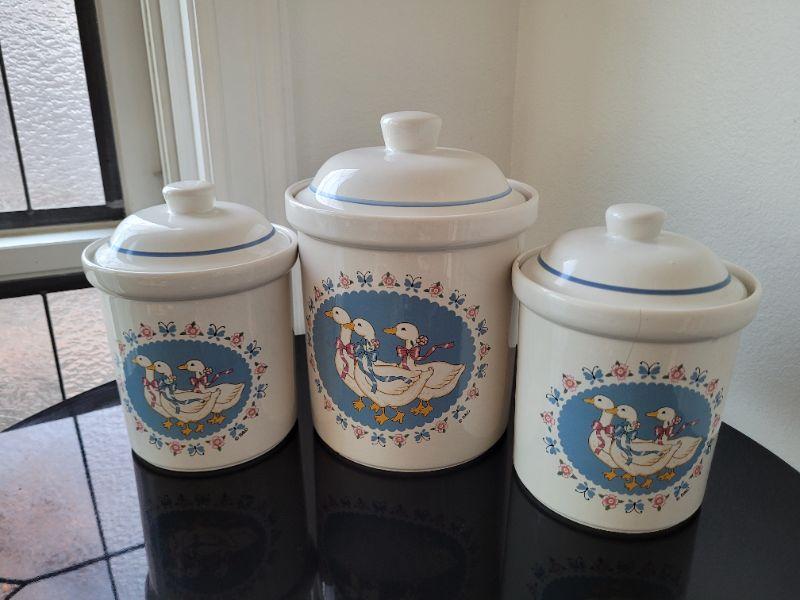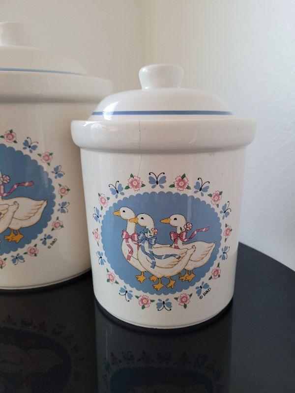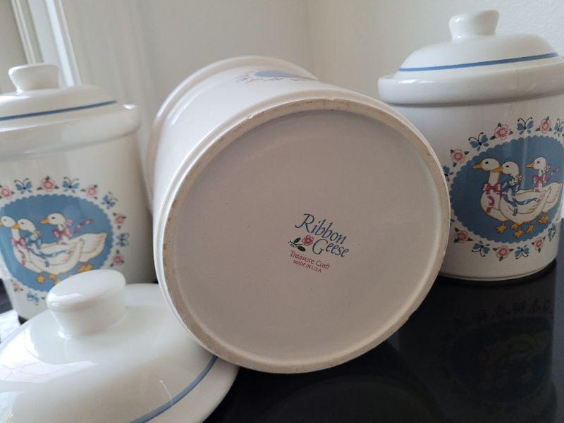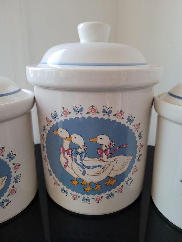 Lot #94: Vintage Set of (3) RIBBON GEESE Kitchen Canisters