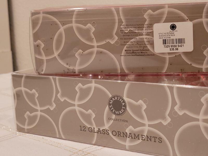 Lot 94: (24) NEW Martha Stewart Glass Christmas Ornaments