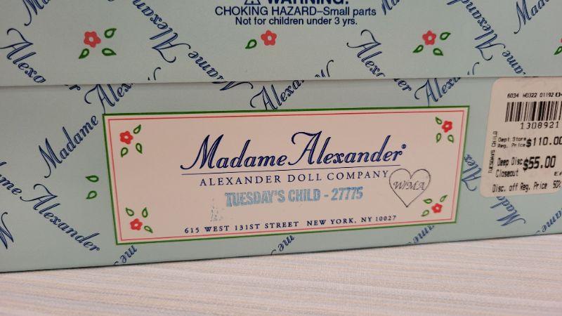 Lot 94: Vintage New Stock MADAME ALEXANDER Doll - TUESDAY'S CHILD 27775