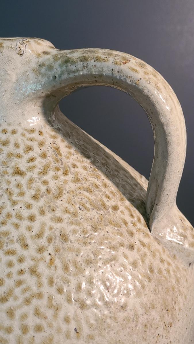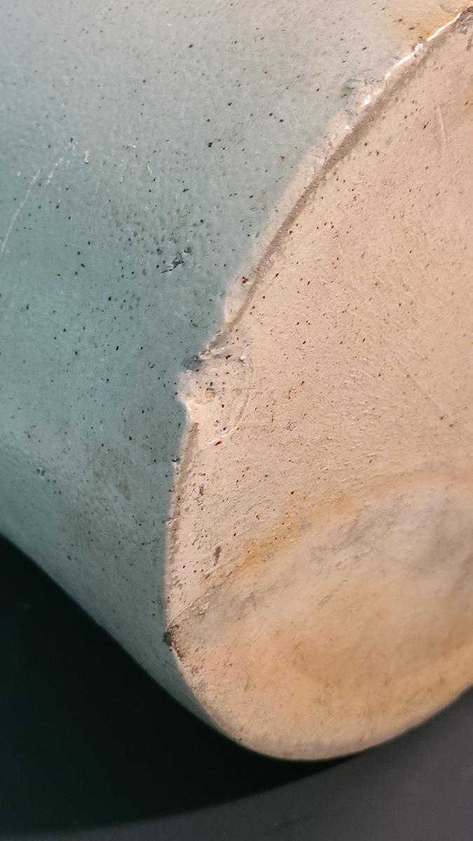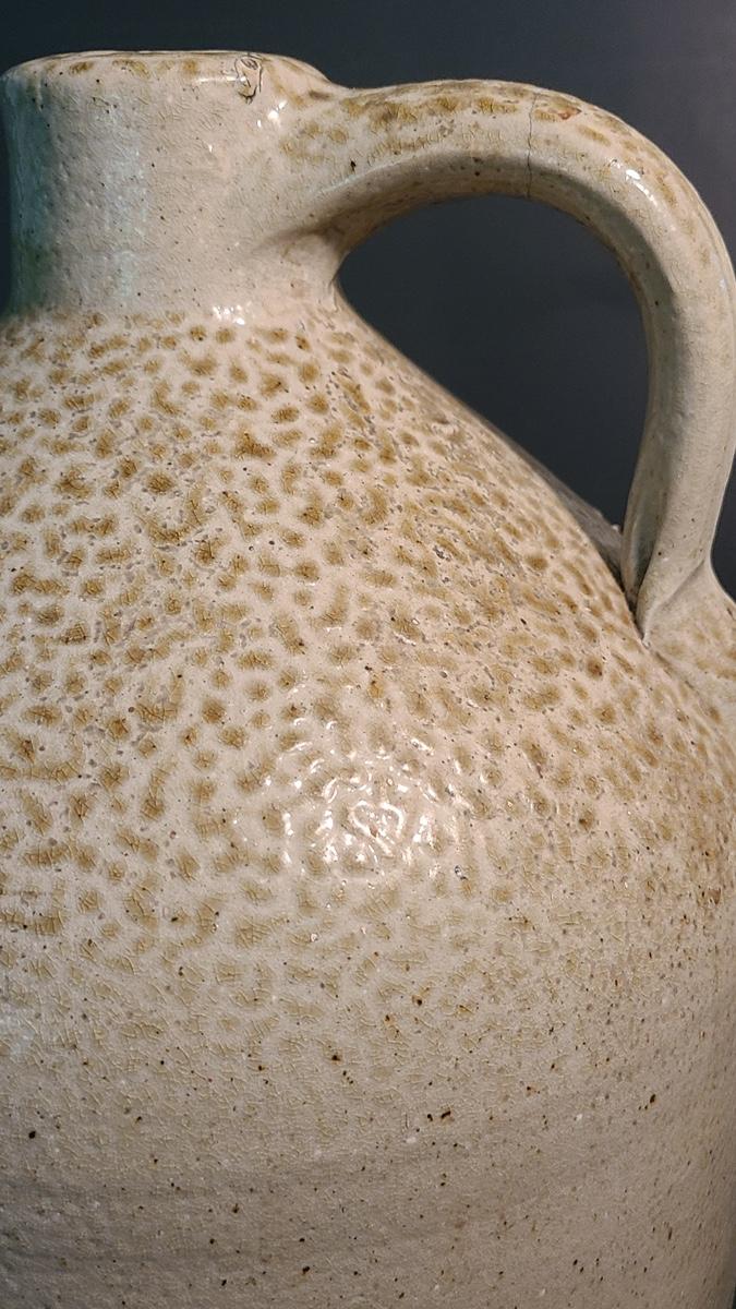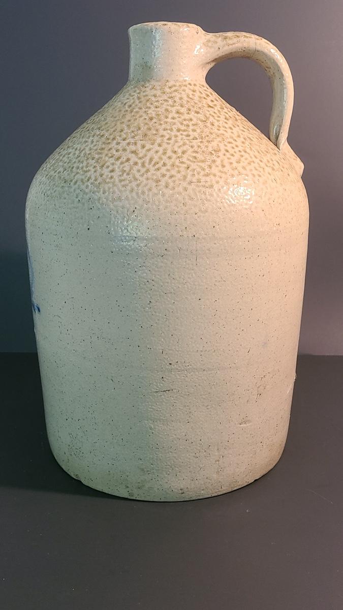 This is a gorgeous jug with some minor flaws due to age and use. There is a small chip on the bottom edge rim as pictured, and there is a hairline crack around handle, not sure if a firing line or a repair it is that thin and perfect around, as well as sturdy. Cobalt blue design on front with salt glazing texture. Pictures are the best representation of the item in the lot, the condition of the items in the lot, and the size if measurements were taken. All items are sold as-is, since they are pre-owned and antiques. We are not experts and do our best to describe and pictures have been taken from every angle. Thank you for looking and have fun bidding.