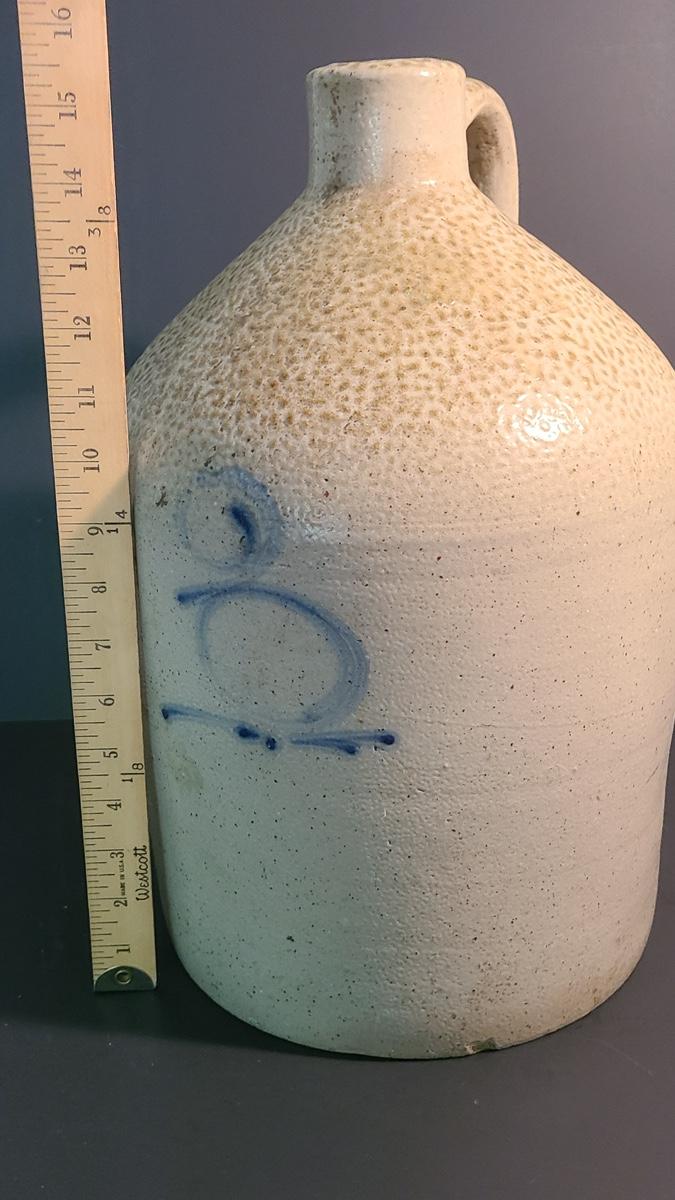 Lot 94: Antique Salt Glaze 3 Gallon Jug with Cobalt Design