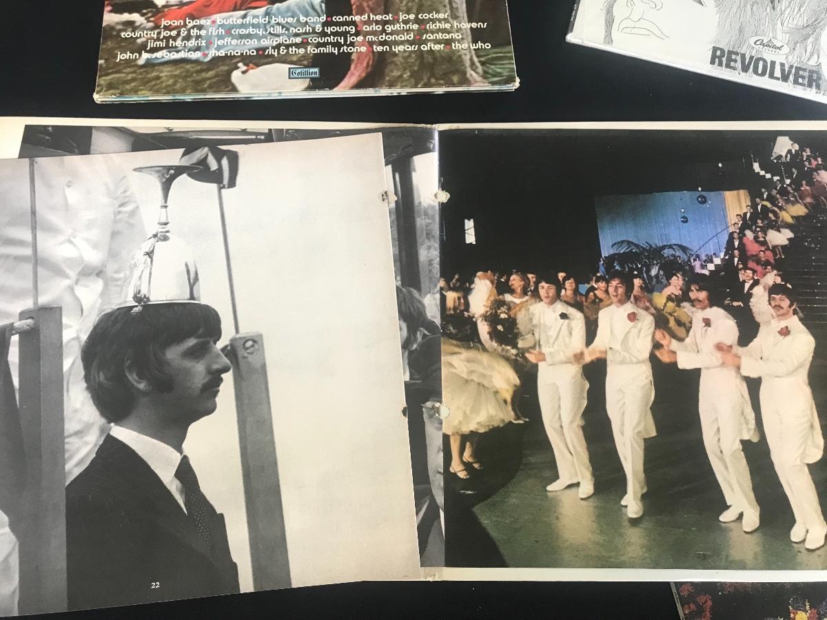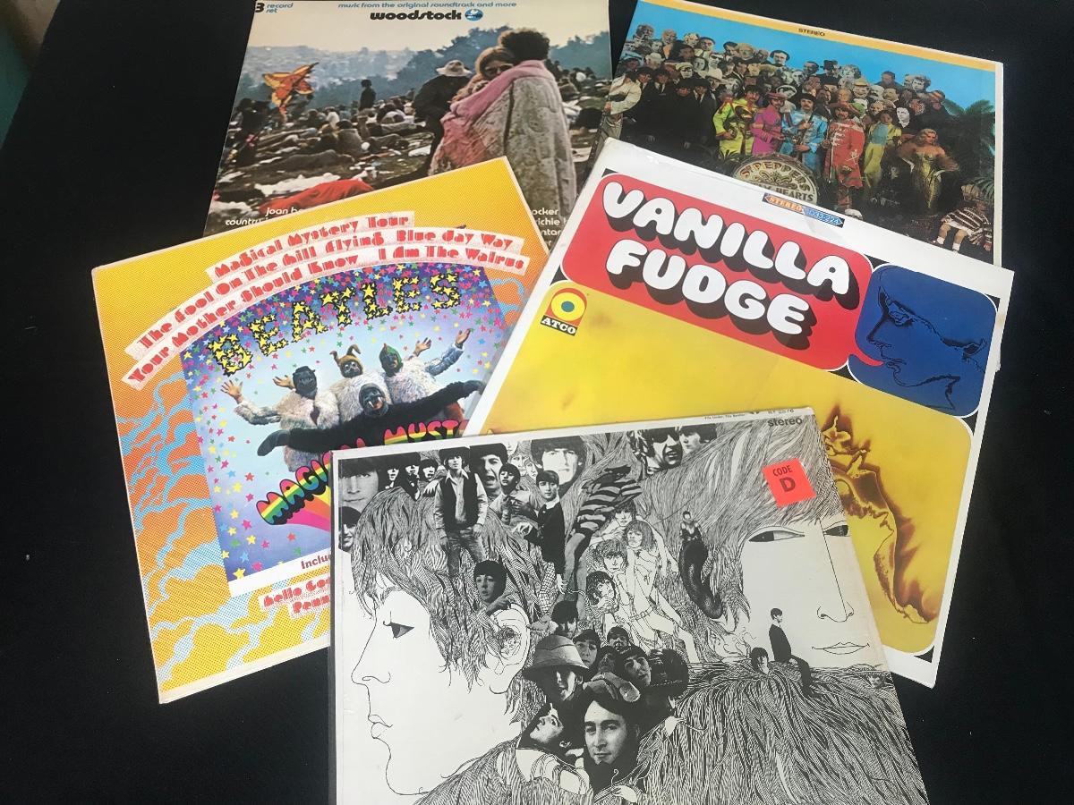 The Beatles fabulous Magical Mystery Tour, Sgt Pepper, and Revolver, Vanilla Fudge, and the concert, Woodstock. Please see all pictures for content of the lot, condition of the lot, and measurements if taken. Pictures are the best representation of the items listed and items are untested unless indicated in description. Thank you for looking and have fun bidding!