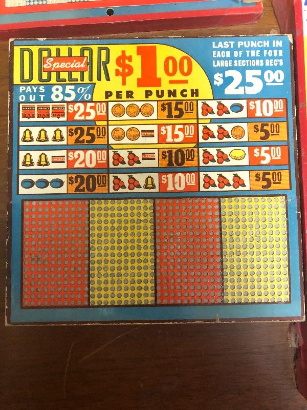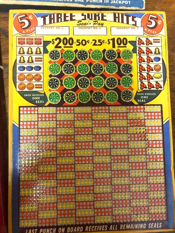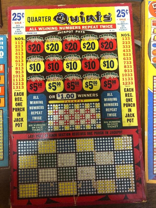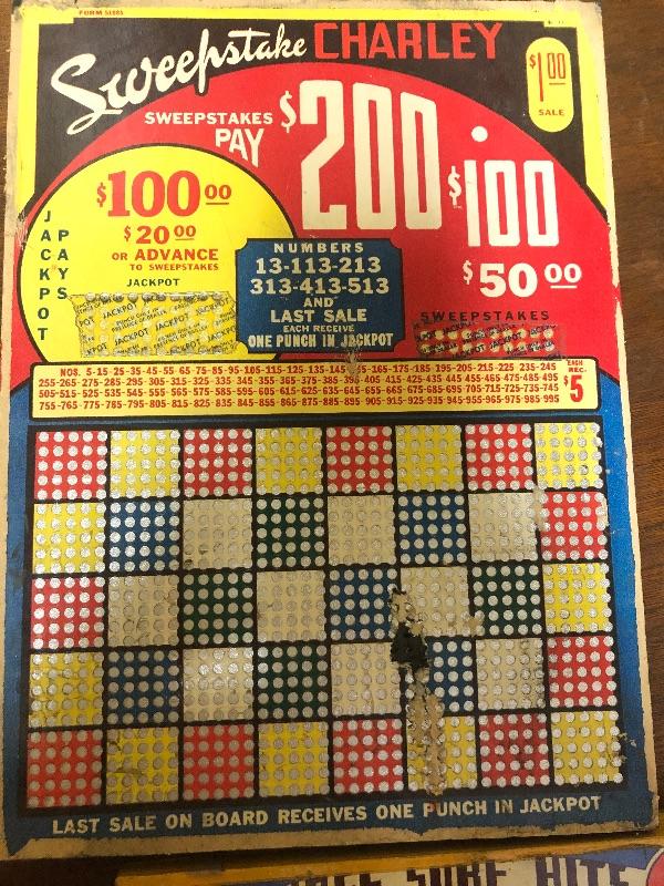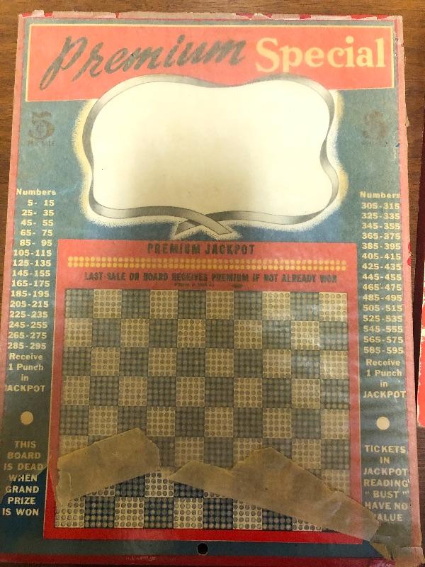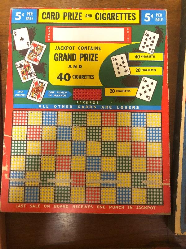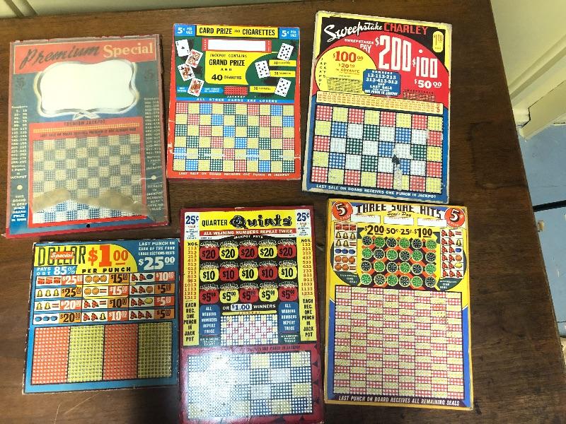 _6 boards: dollar special, quarter quints, card prize and cigarettes, premium, three sure hits, sweepstake charley: Vintage used condition