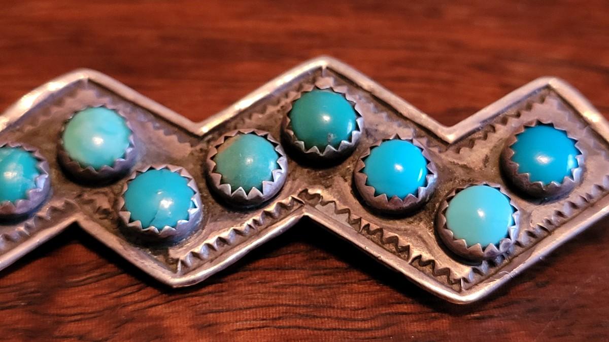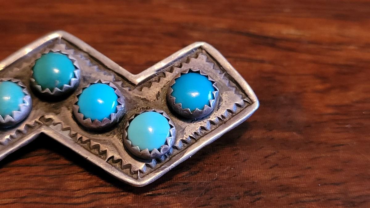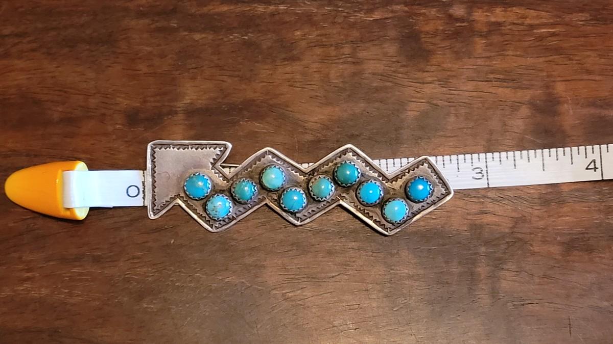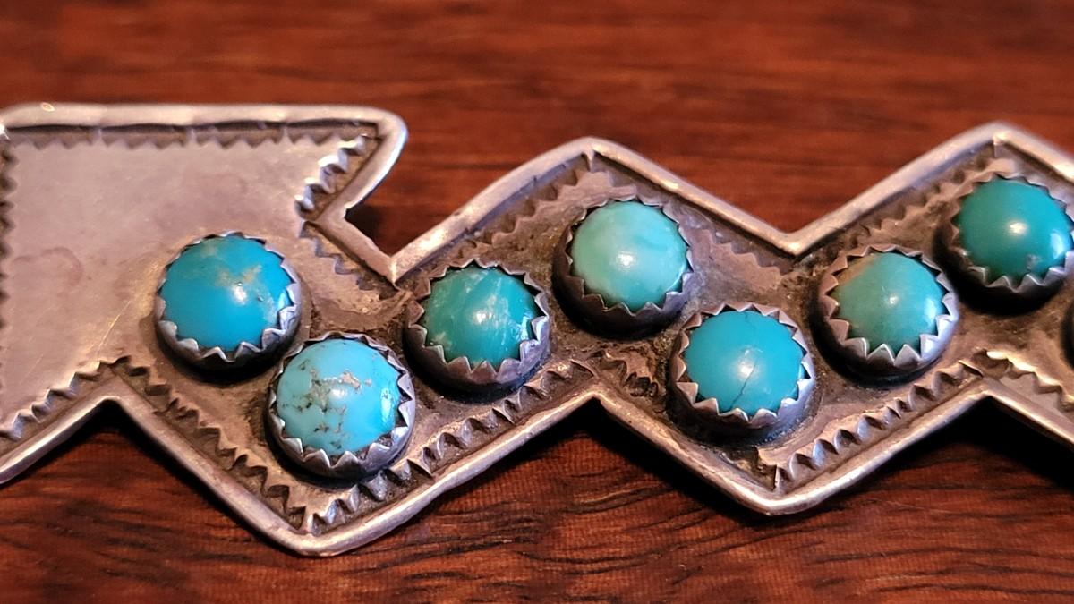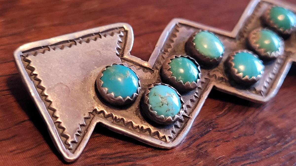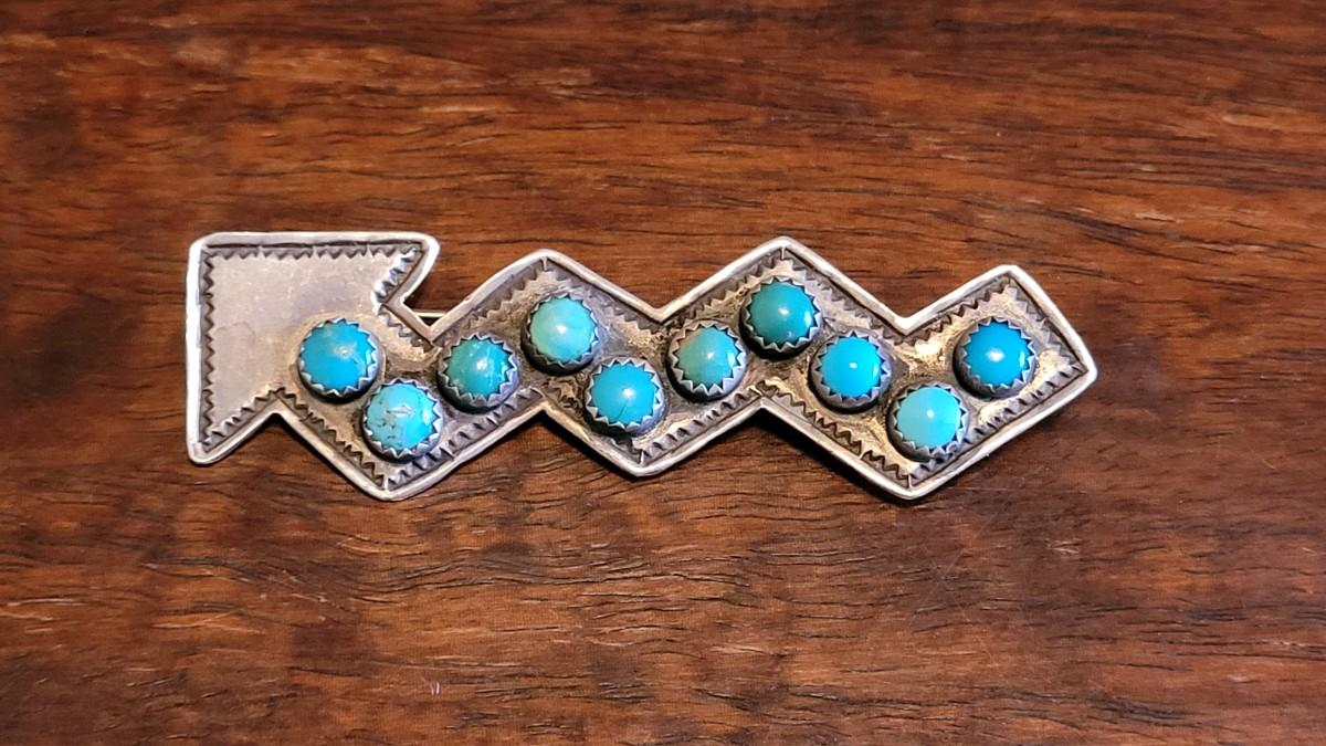 Lot 94: Vintage 1980's Rare HEATHER HICKS Turquois & Sterling Arrow Brooch Made in Taos