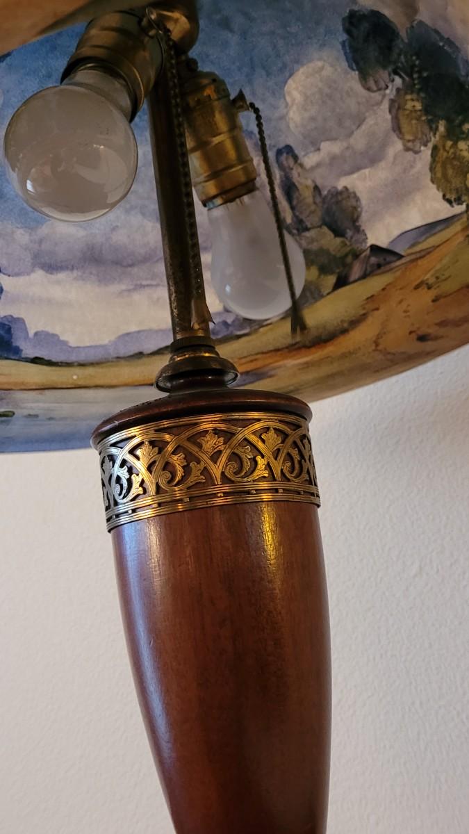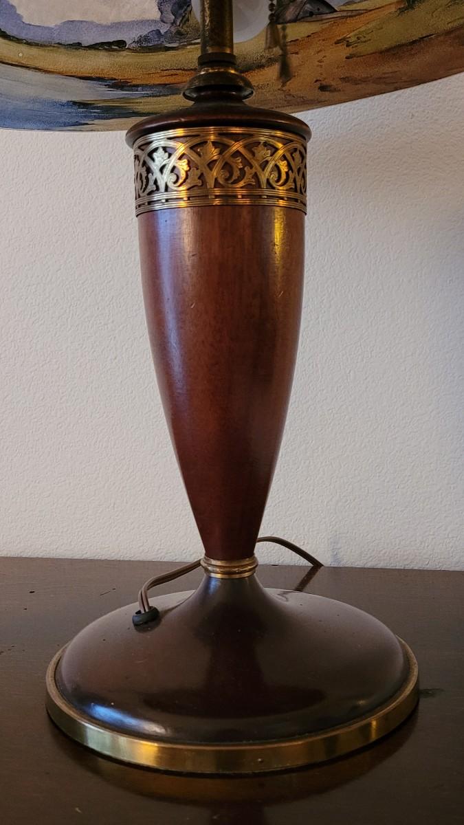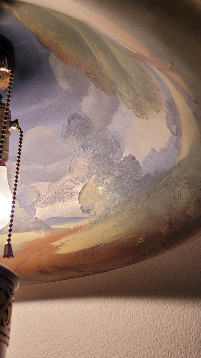 Lot 94: Antique Pairpoint Lamp with a  Reverse Painted Shade by C. Durand