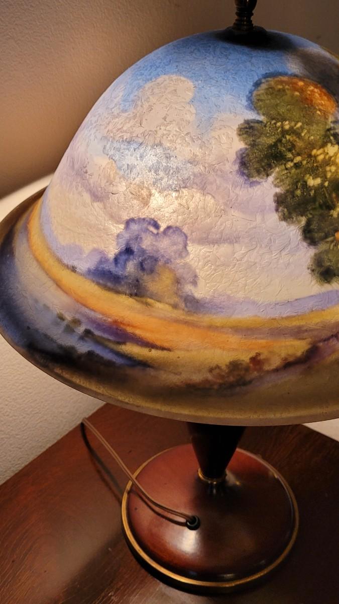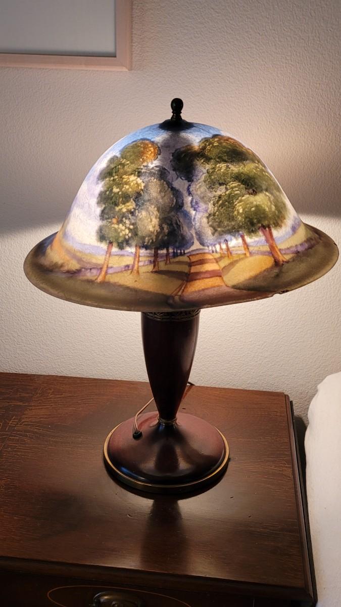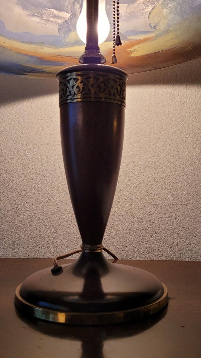 Lot 94: Antique Pairpoint Lamp with a Reverse Painted Shade by C. Durand