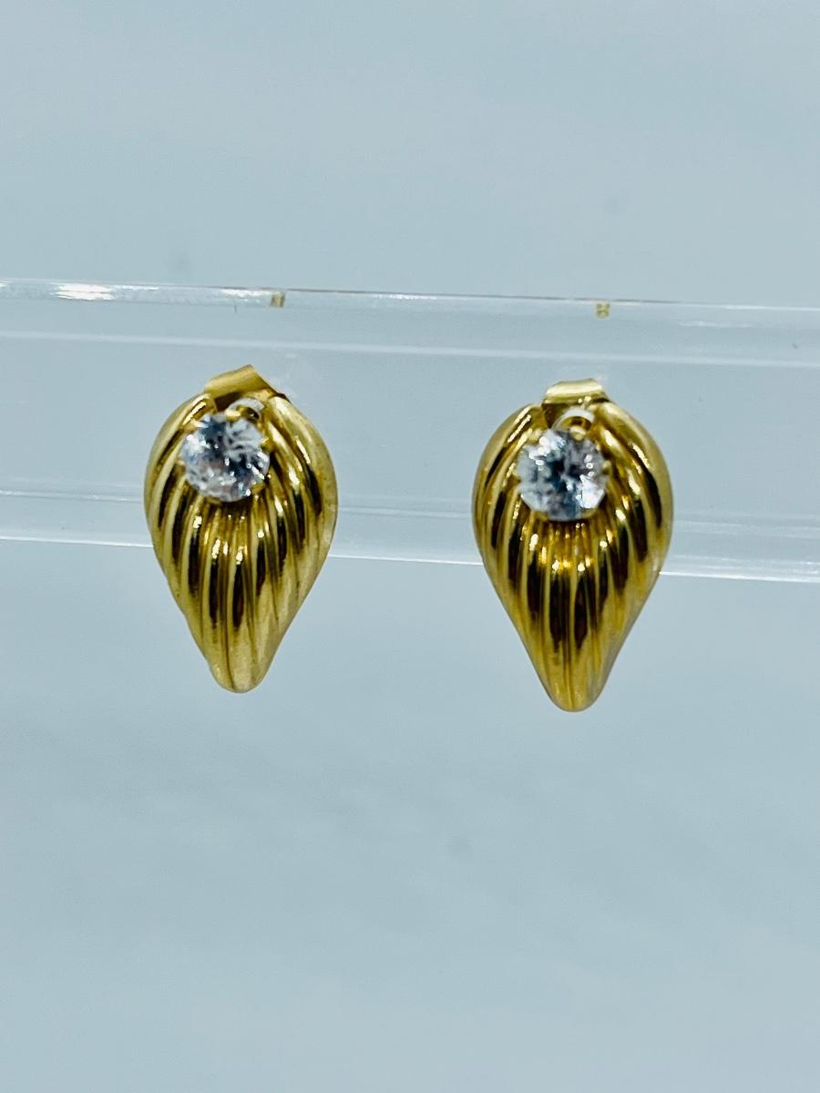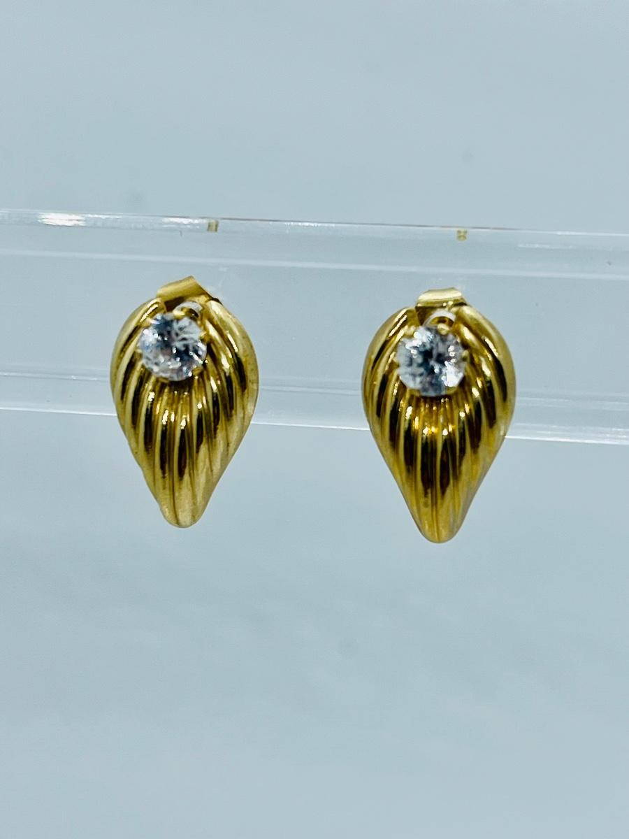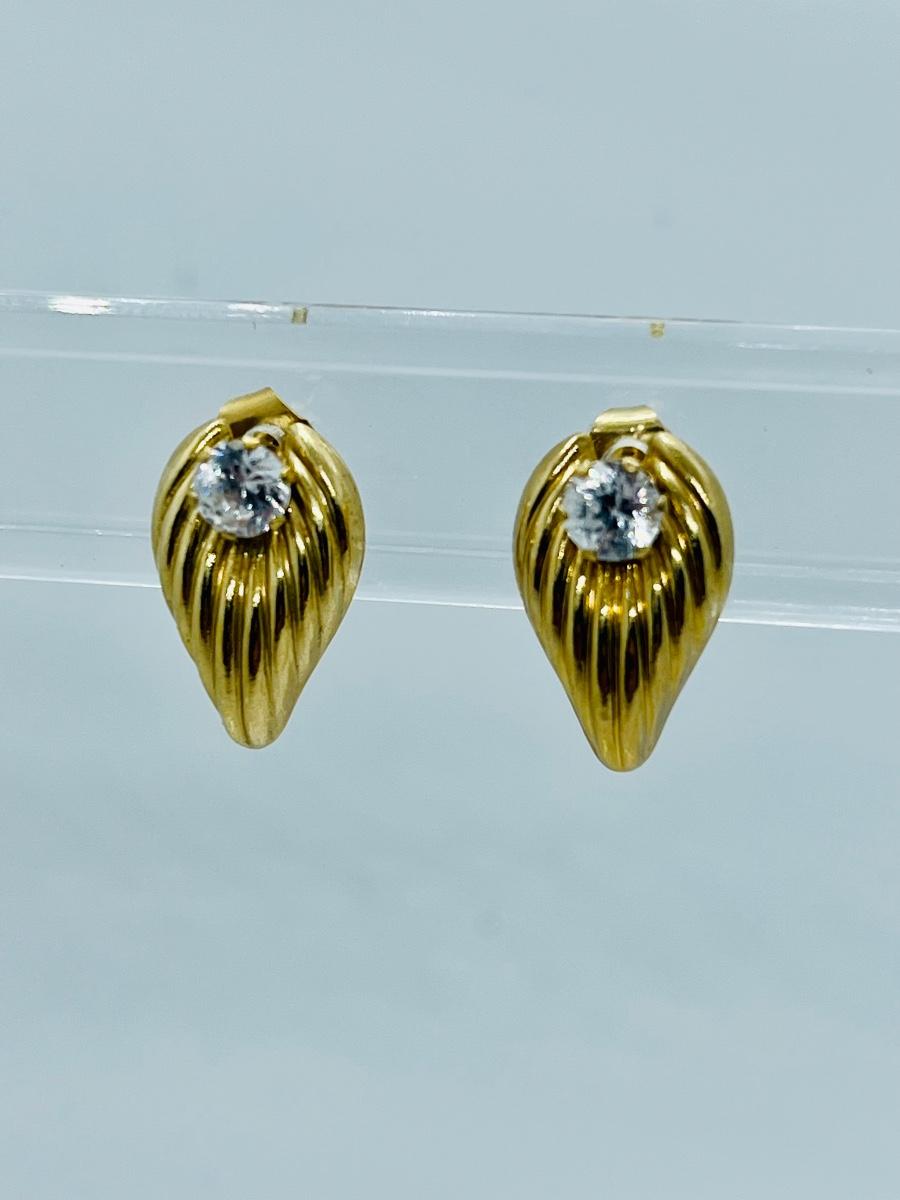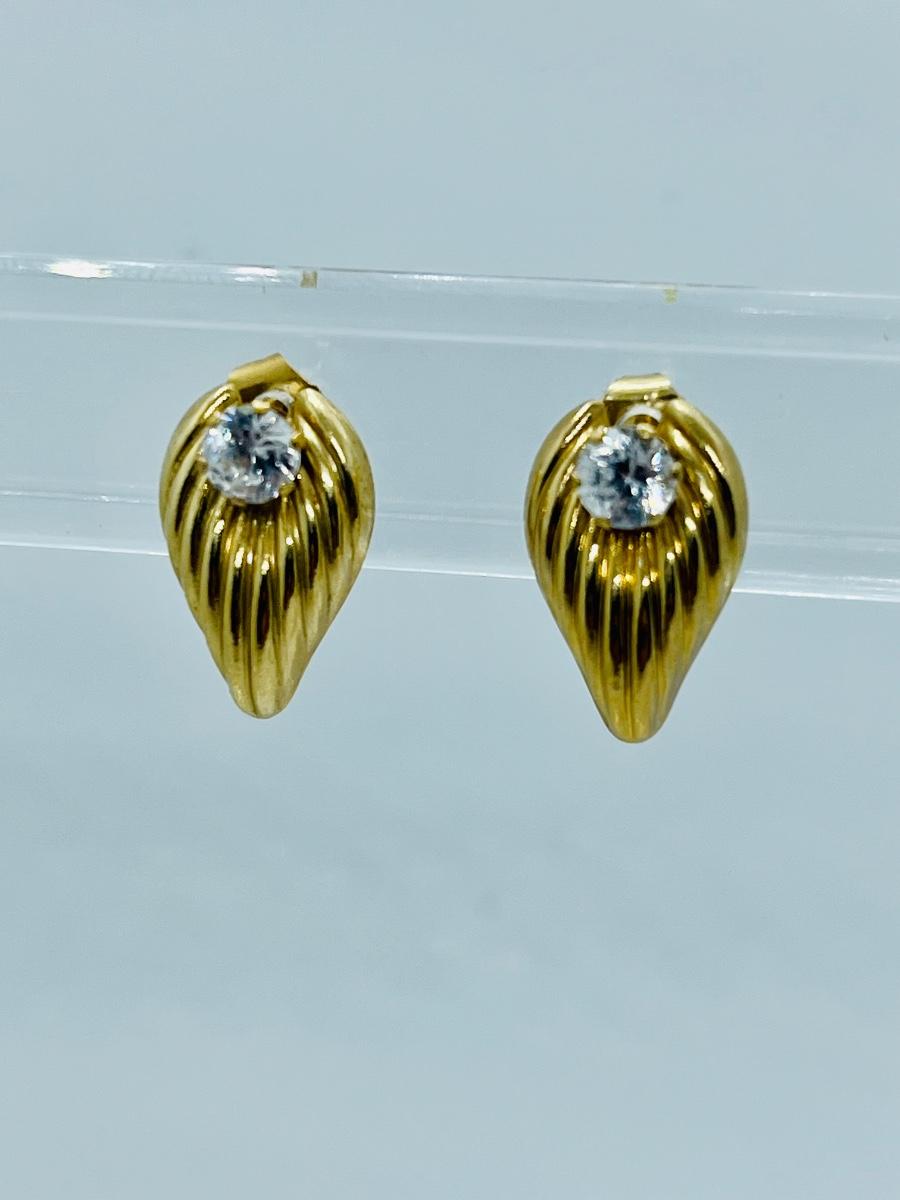 Lot 94: 14k post cz earrings and 14k scallop backdrop dangle earrings