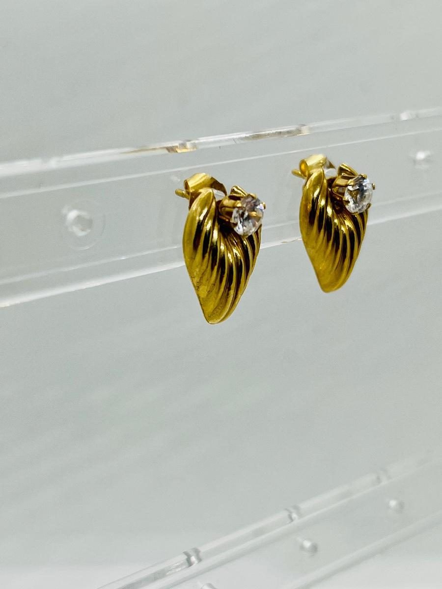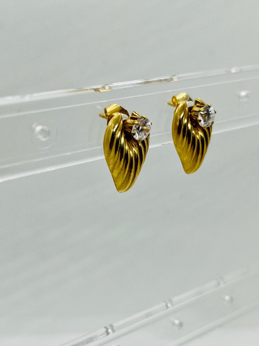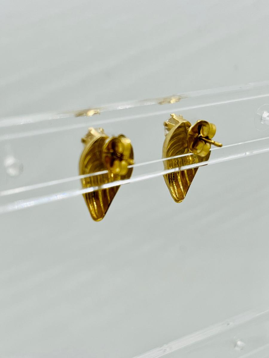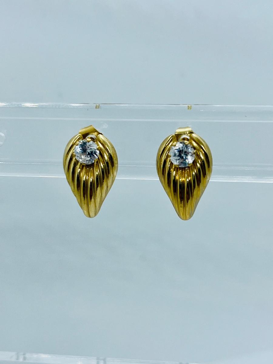 Lot 94: 14k post cz earrings and 14k scallop backdrop dangle earrings