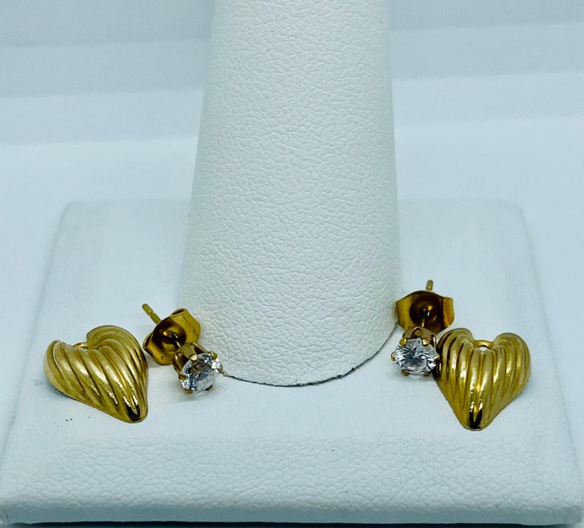 1.1g post cz earrings and 14k scallop backdrop danglers can be worn with or without