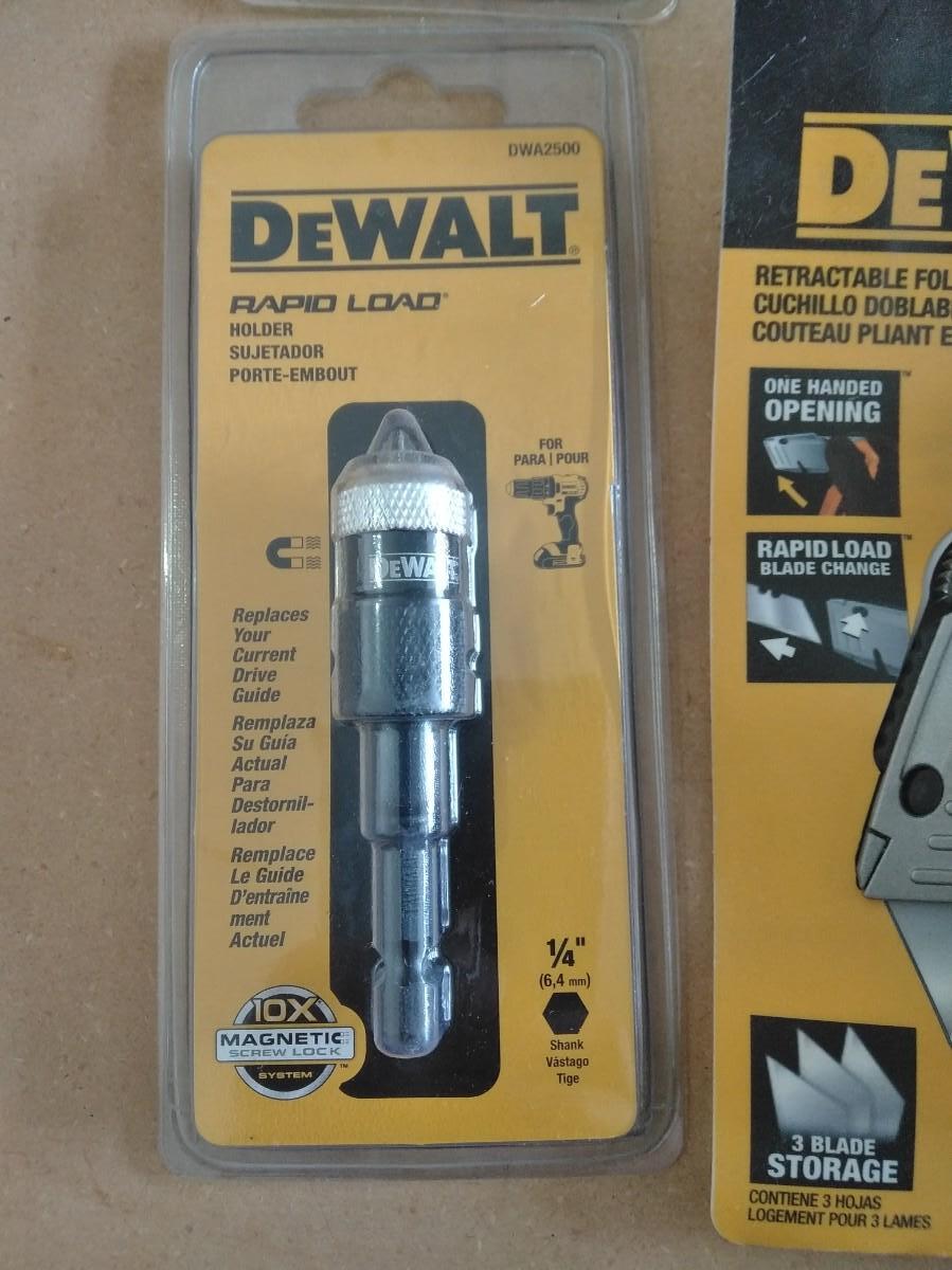 RAPID LOAD HOLDER, FOLDING BOX CUTTER, 100' TAPE MEASURE, CANVAS DRILL HOLDER, SAW BLADE KIT, DRYWALL SCREW SETTER, AND MORE