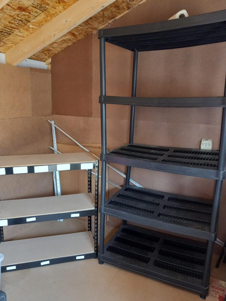 2 STORAGE SHELVES MEASURE 34X39X36 AND 35X24X74