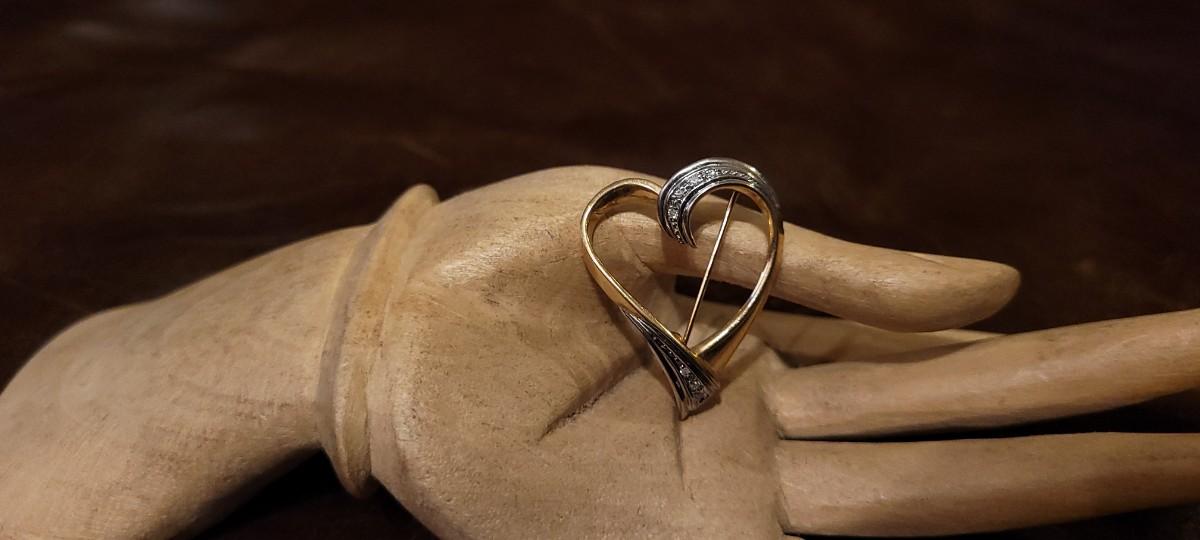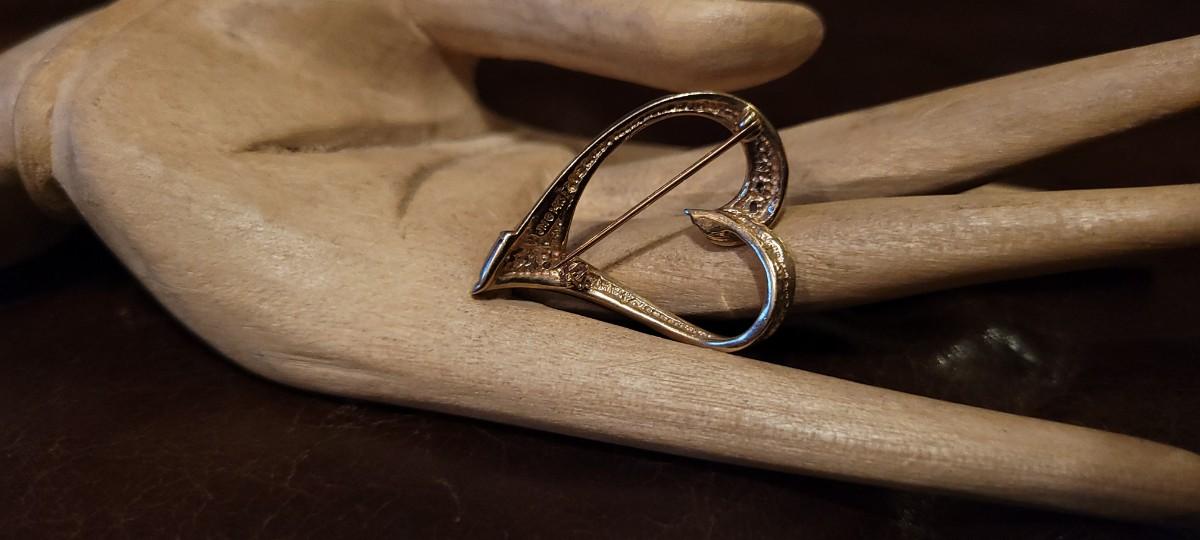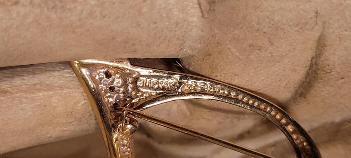 Vintage 14k Yellow Gold Brooch Pin with a series of small diamonds along the face.