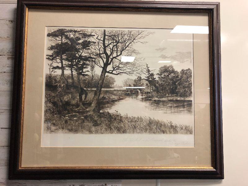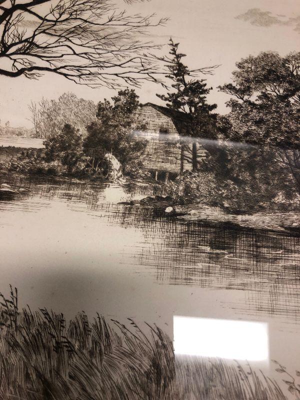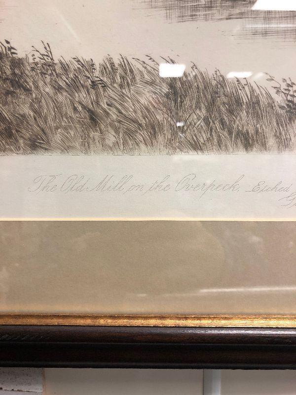 Lot 94 Antique Etching The old Mill on the Overpeck