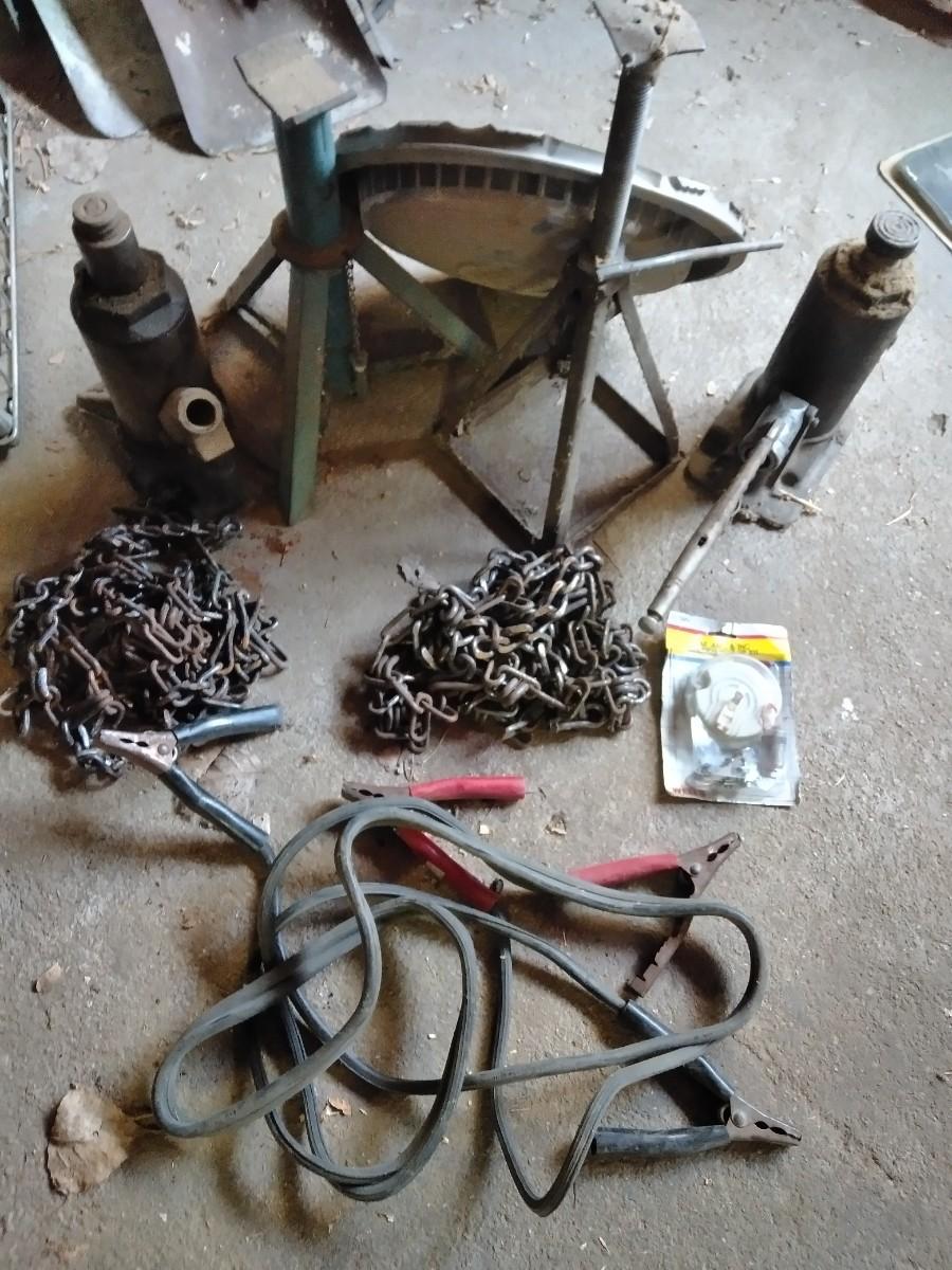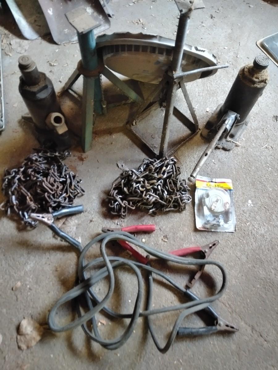 LOT 94 AUTO CHEMICALS, JACK STANDS, CHAINS, AND MORE