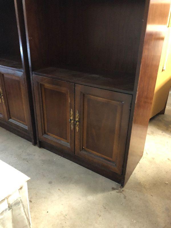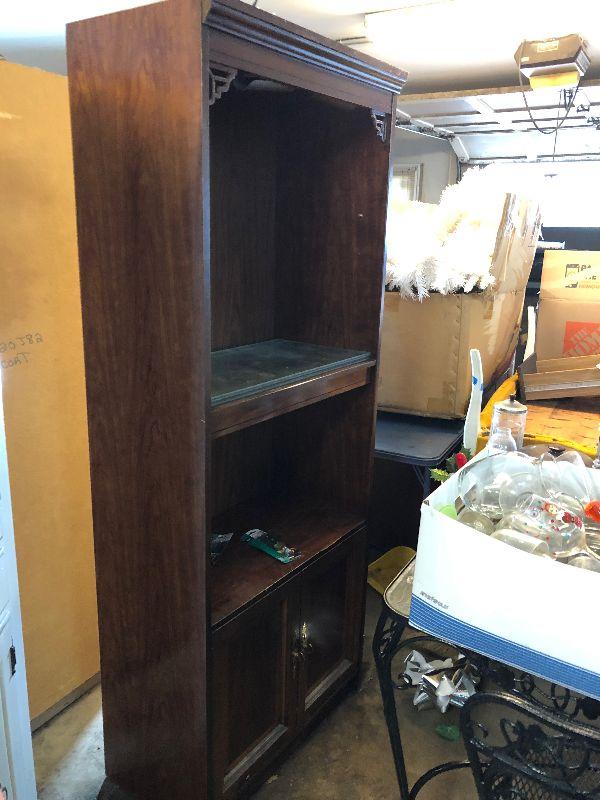 3 lighted bookcases (29' x 74") with miscellaneous items.