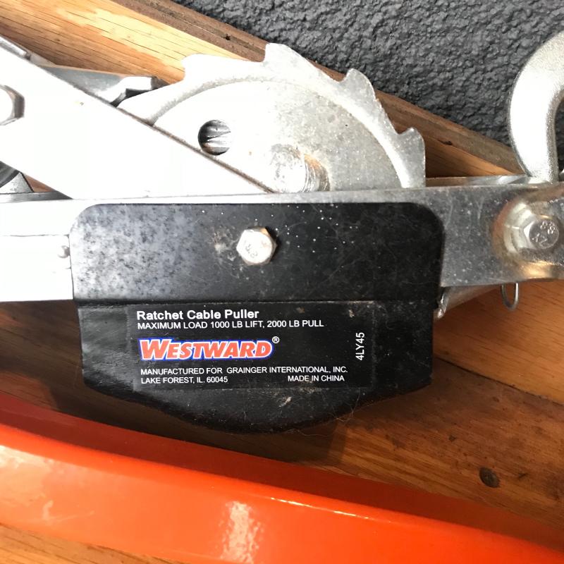 BoWrench for decking, plywood and paneling, and Westward cable puller is like new. Lot is available for local pick up in Asheville, NC only.