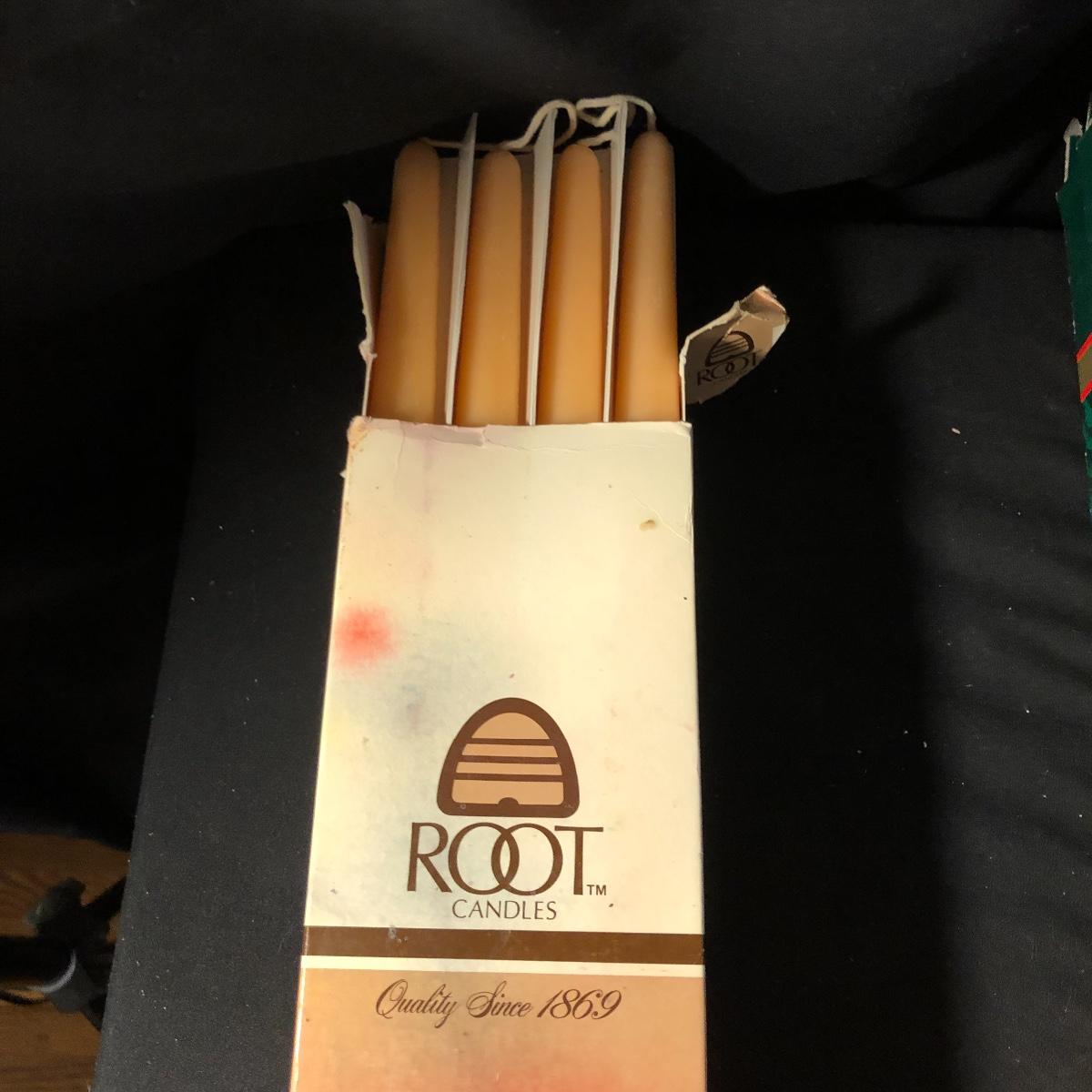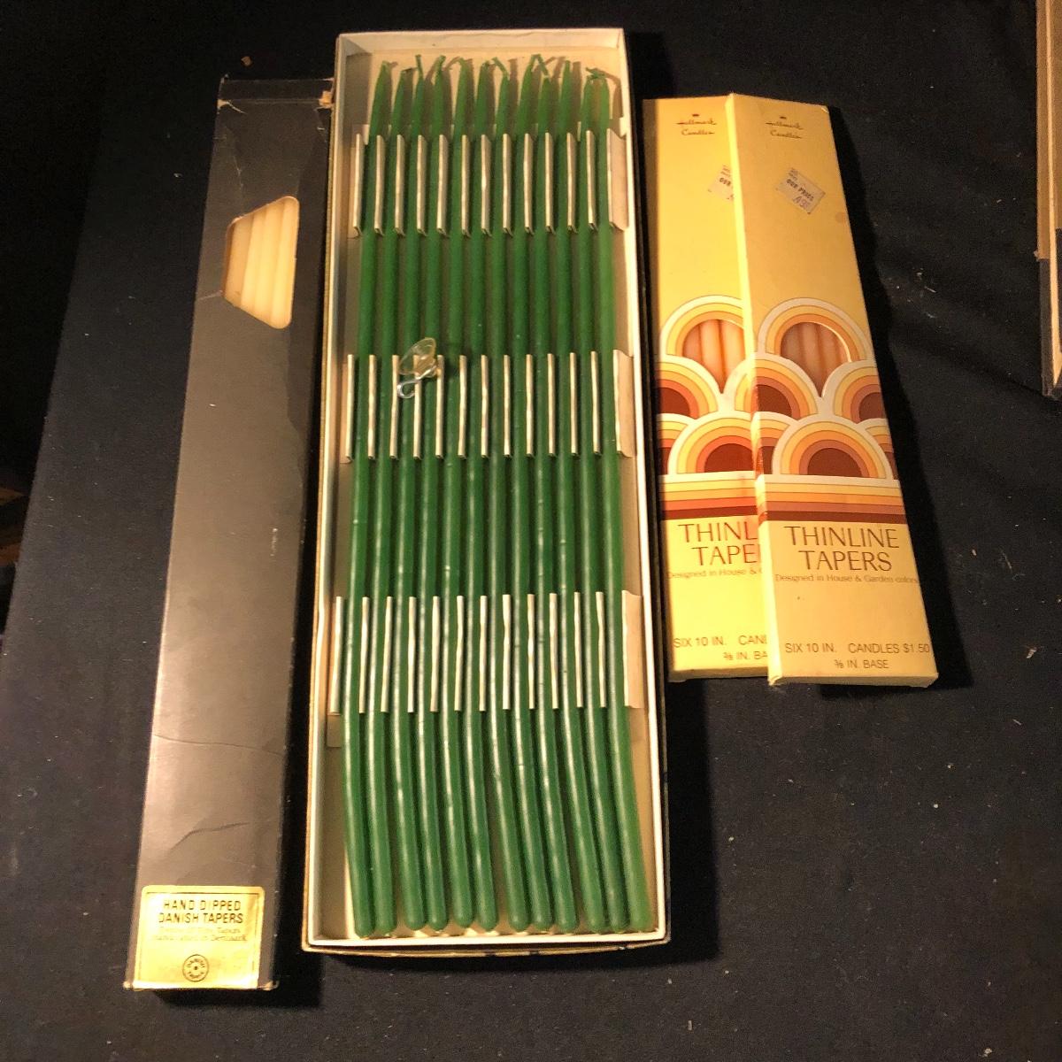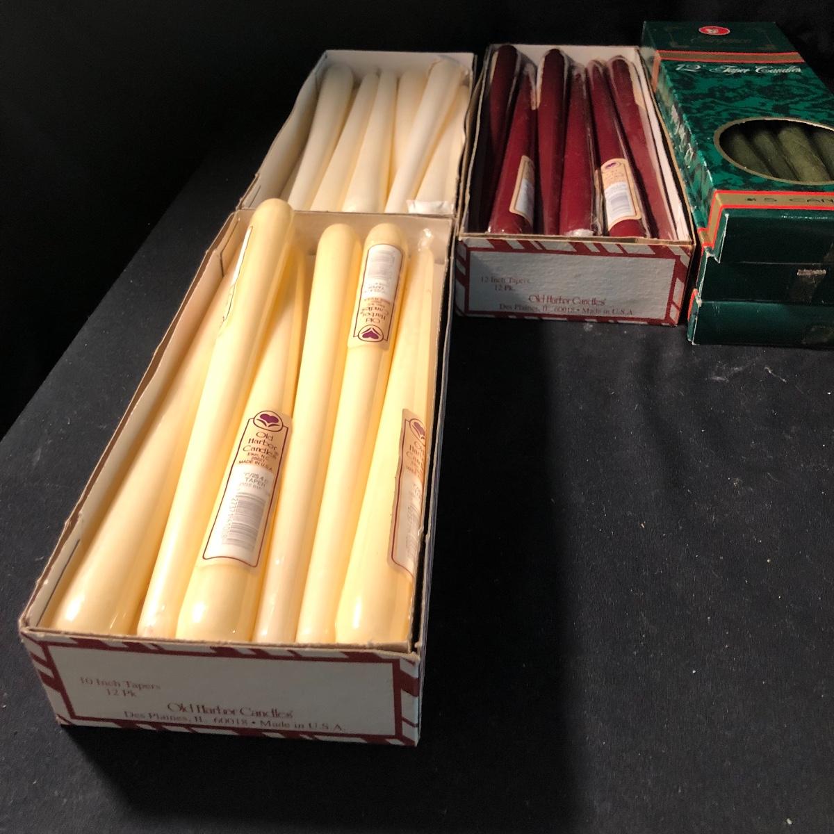 You won’t be in the dark with this large collection of candles. Lot includes over eight tapered candles, thirty tapered candles, tea lights, books, glass plate and more. Rectangular candle measures 3.75” x 9.75” x 2.5”.