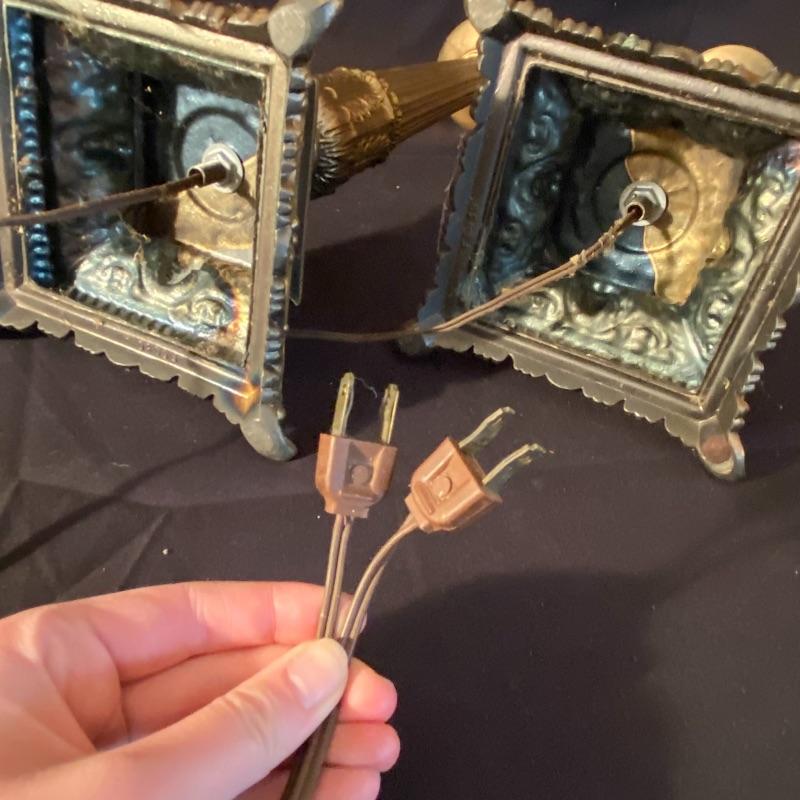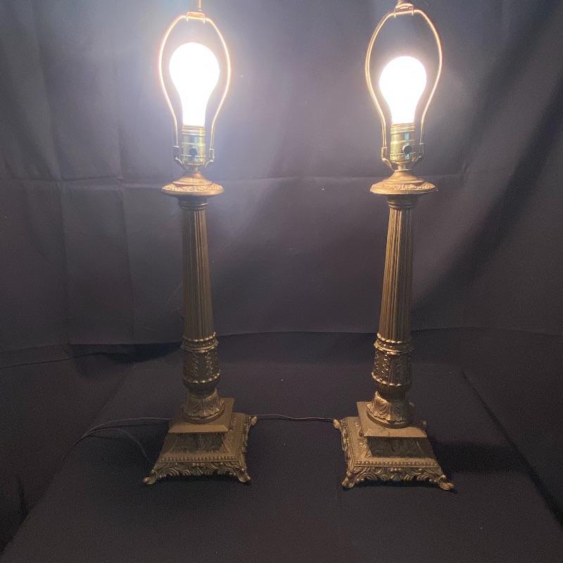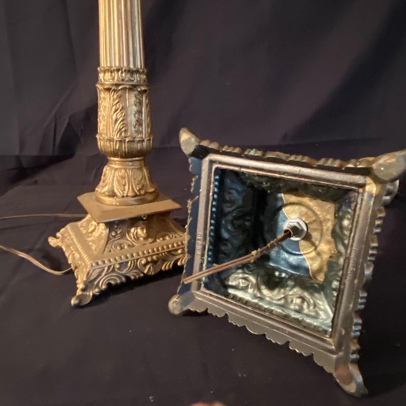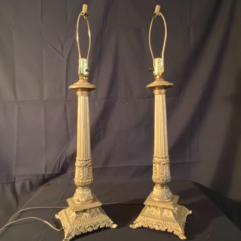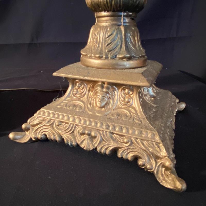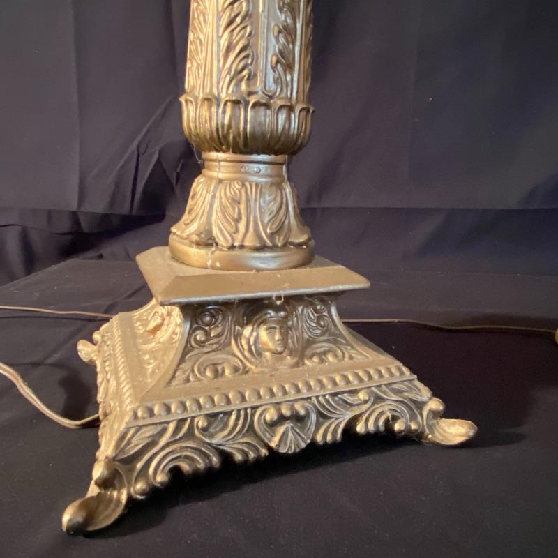Stunning cast metal lamps in good condition. Working when tested. Standing approximately 28” high, these lamps are bound to make a strong statement in any room. Beautiful color and fauna details on sturdy cast metal. Local pickup only.