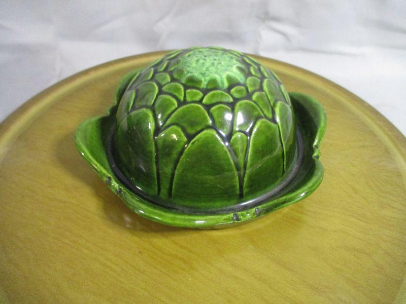 The only way that I know of to eat artichokes (unless they are at the salad bar) is to dip the leaves in butter, so it only made sense to include the mini ramekins with this lot. There are no identifying marks on the lazy susan set other than a number. All pieces are in excellent condition.