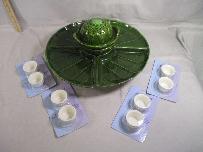 Lot 94 - Ceramic Artichoke Lazy Susan with Mini Ramekins