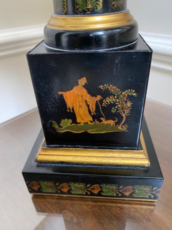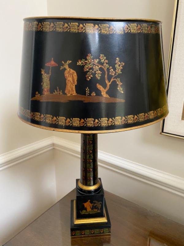 Beautiful painted Chinese style decorators lamp. The shade is metal and needs a little reshaping.. otherwise in good condition