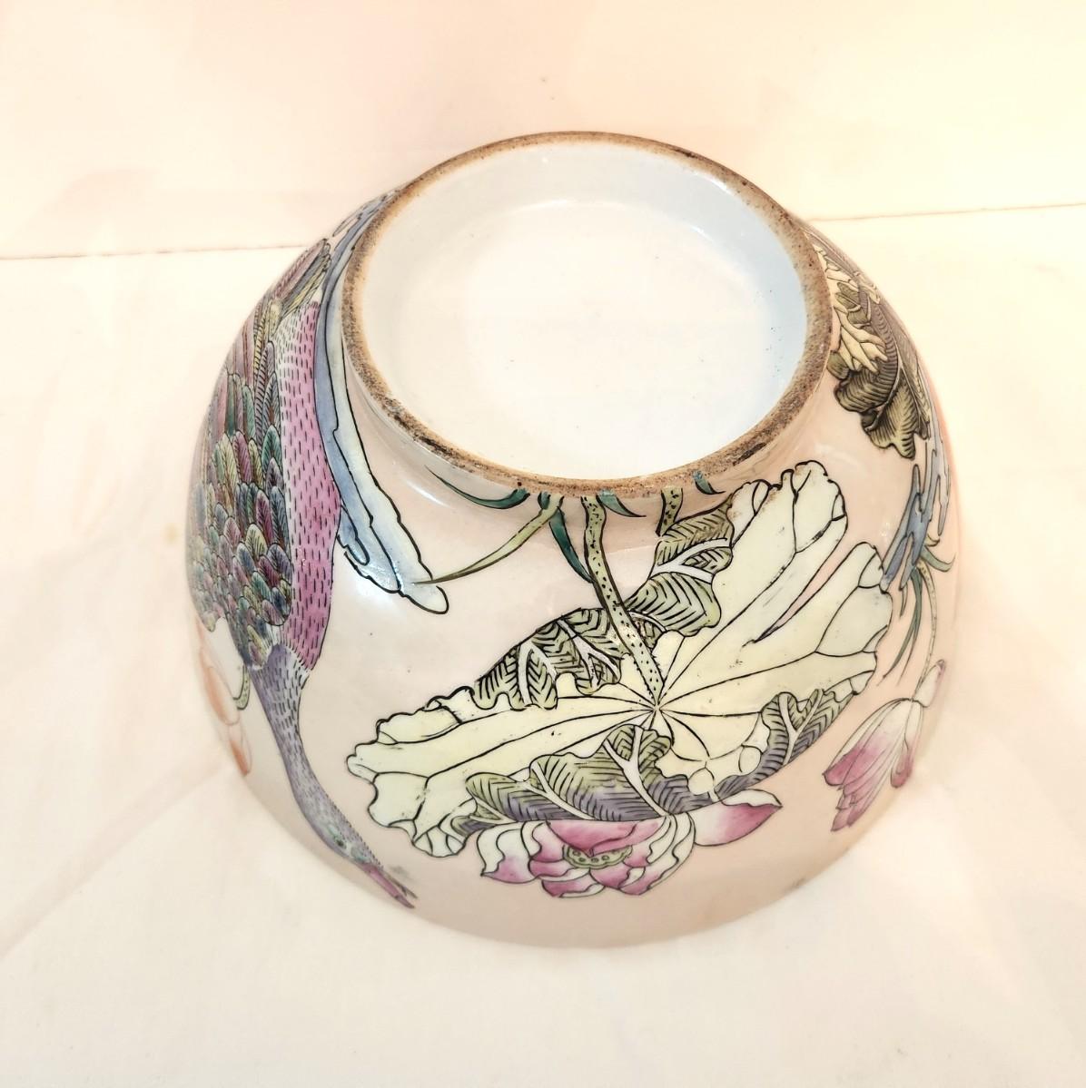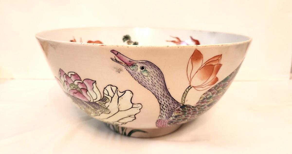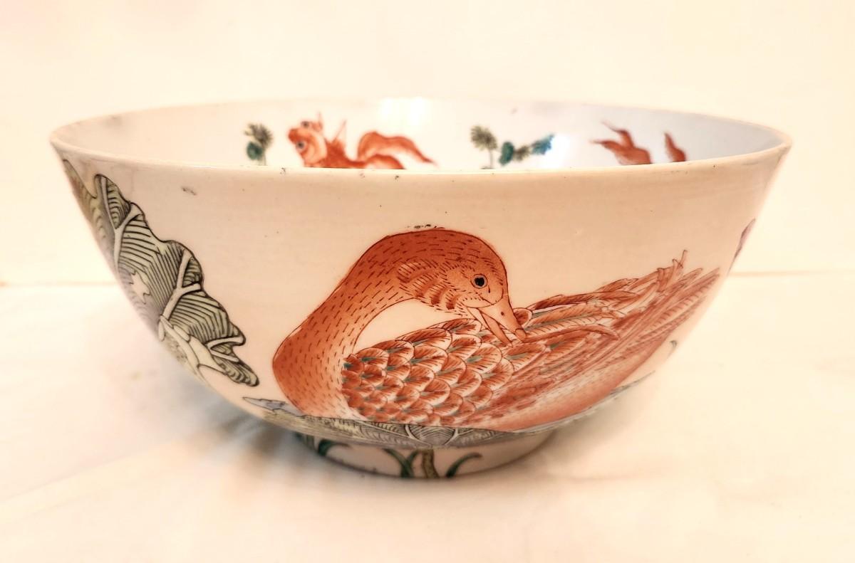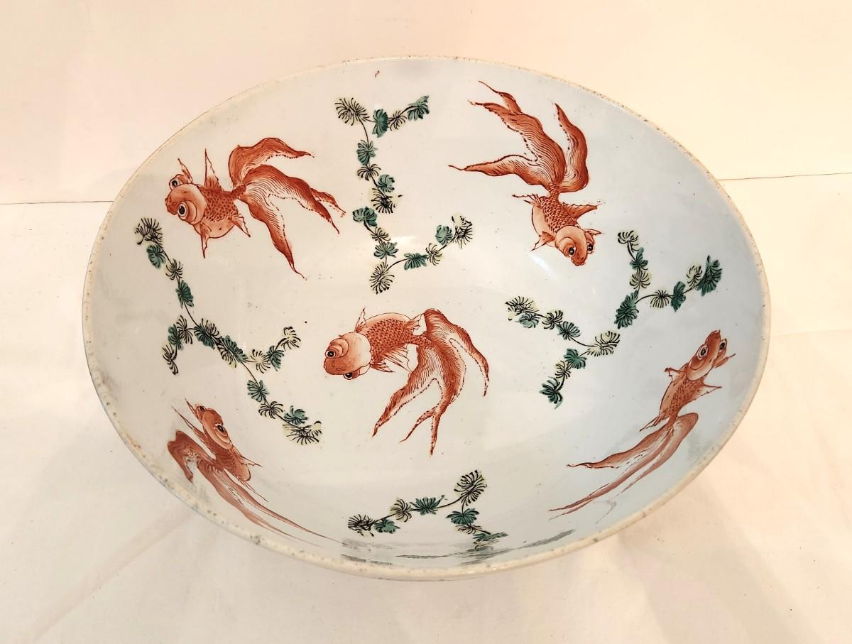 Very pretty Asian Style Center bowl - Goldfish motif. Vintage condition. 5.5" tall, 12" across.