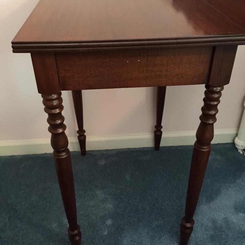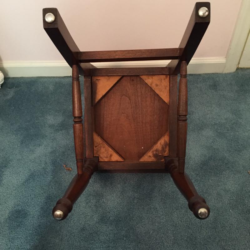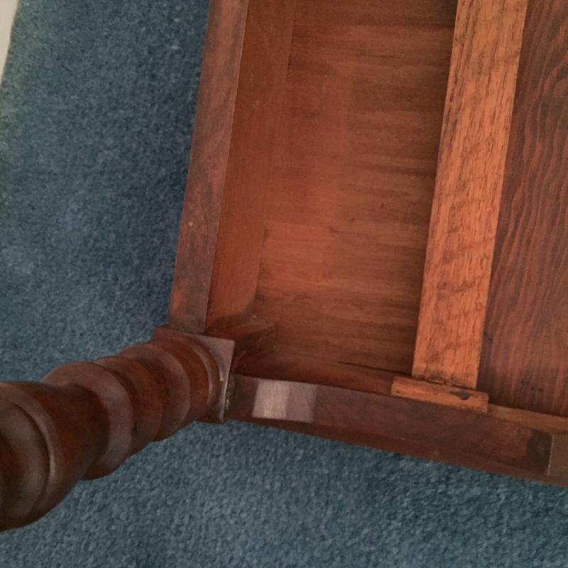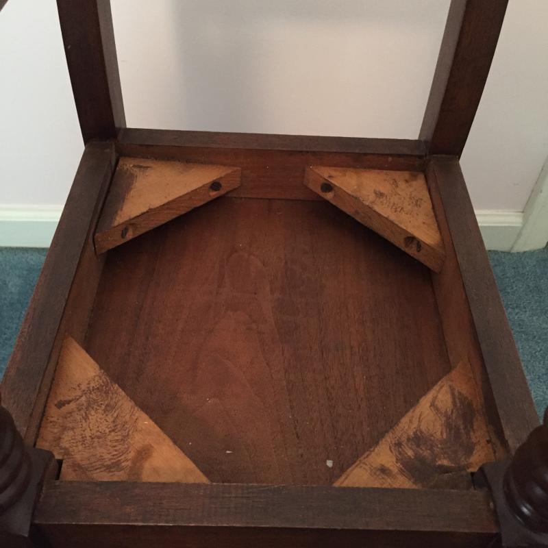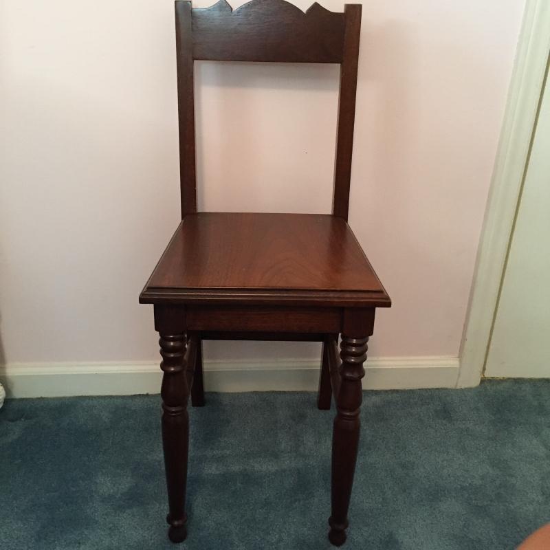 Small Wooden Desk and Chair. Owner states that they are handmade. Great for a child's room! Desk Measures 18”x24”x30” and is up a flight of stairs. Local Pickup Only