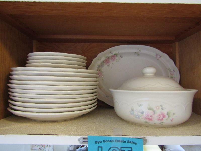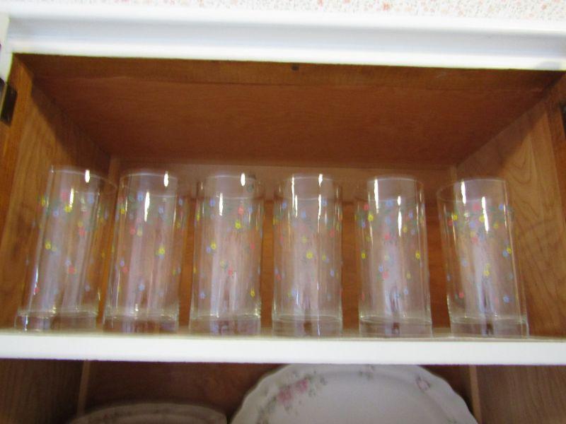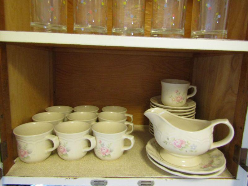 PFALTZGRAFF FLORAL PATTERN DISH SET WITH EXTRAS, MATCHING SET OF DRINKING GLASSES