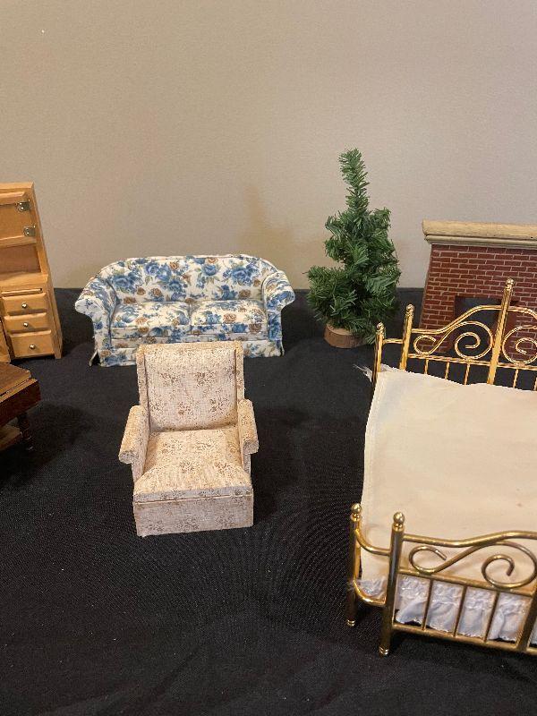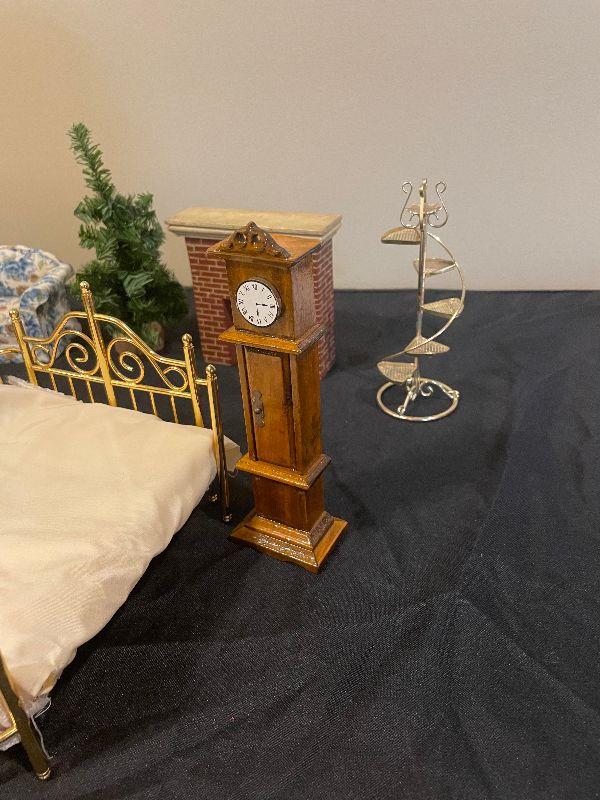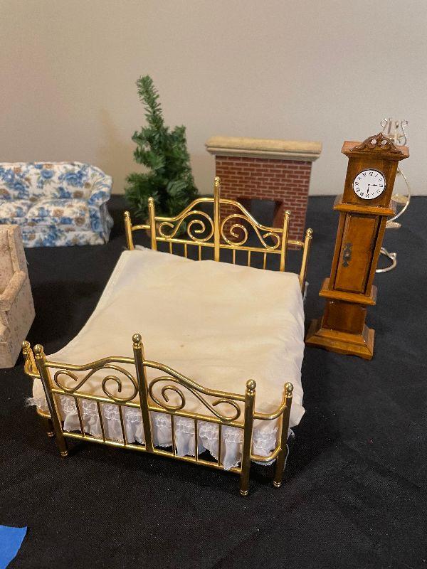 Brass Bed, Sofa, Chair, Fireplace, Grandfather Clock and more!