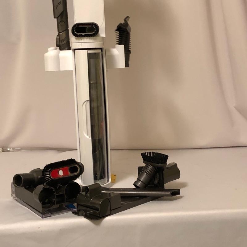 Dyson accessory stand with several accessories included..
