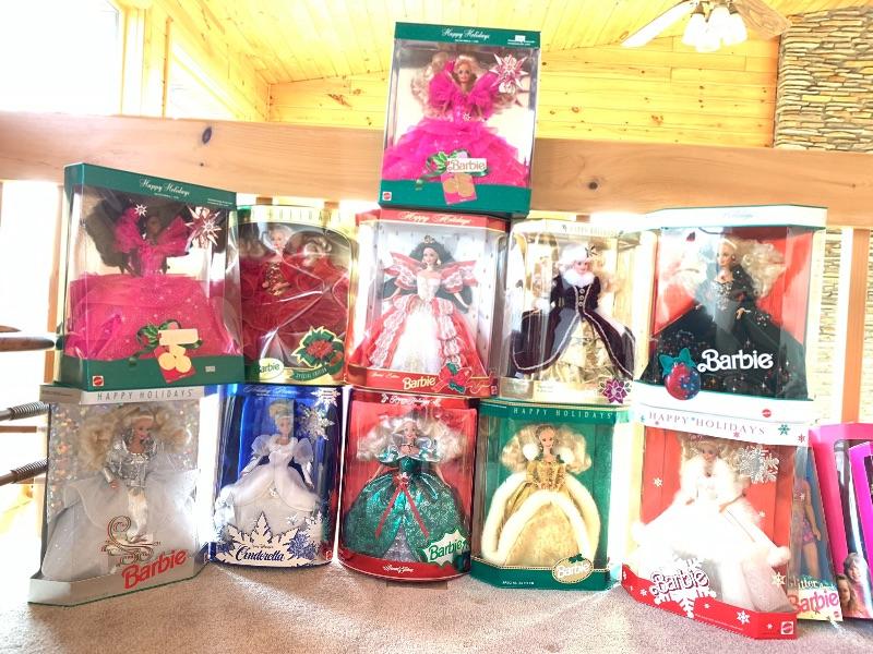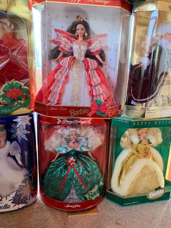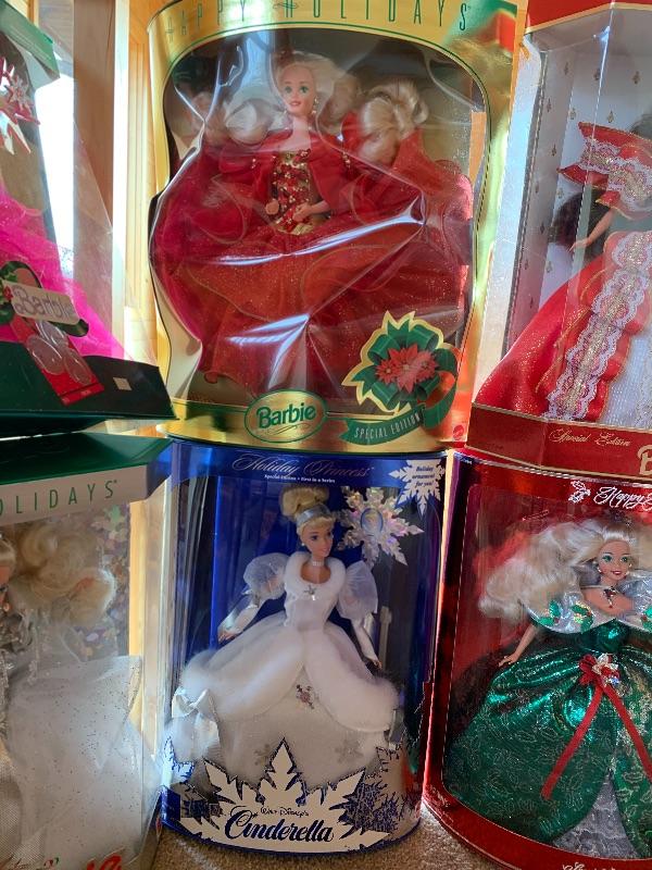 Eleven total Holiday Barbies still in original boxes ranging from 1989 - 1997 are in good condition. 1993 doll box appears to have either been opened or maybe crushed in a box (see pix of back) but still in good condition. See photos for details. Shipping available for this lot.