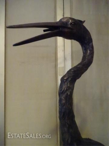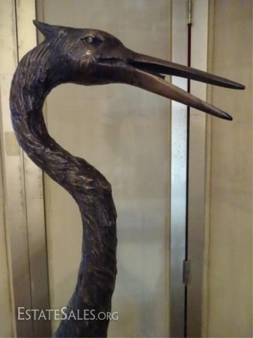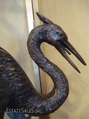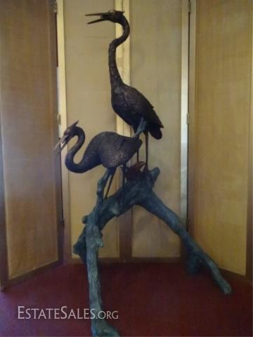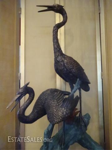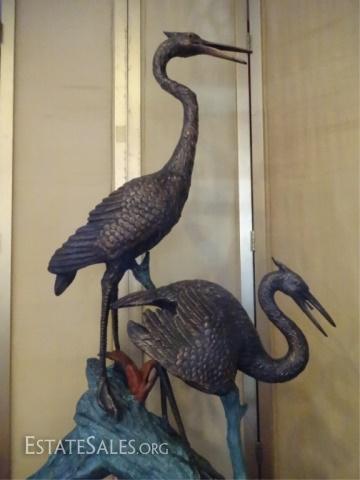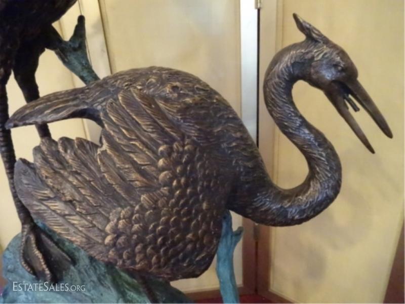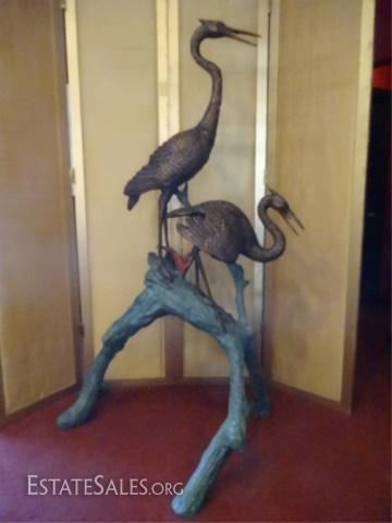 LOT 94: HUGE BRONZE SCULPTURE, 2 CRANES, CAN BE USED AS FOUNTAIN