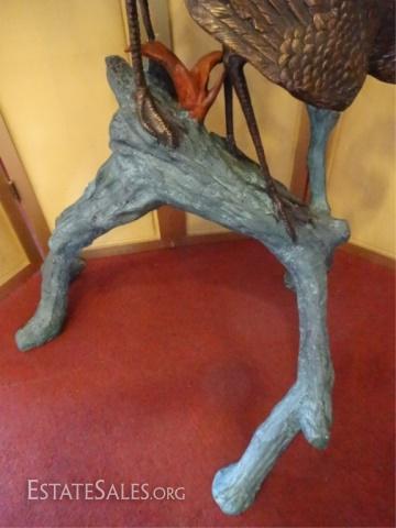 LOT 94: HUGE BRONZE SCULPTURE, 2 CRANES ON BRANCH, PLUMBED FOR OPTIONAL USE AS FOUNTAIN WITH WATER FLOWING FROM BIRDS' MOUTHS, NEW, NEVER USED, IN EXCELLENT CONDITION, 39"H X 38"W X 32"D, SKU006.22 H1240
