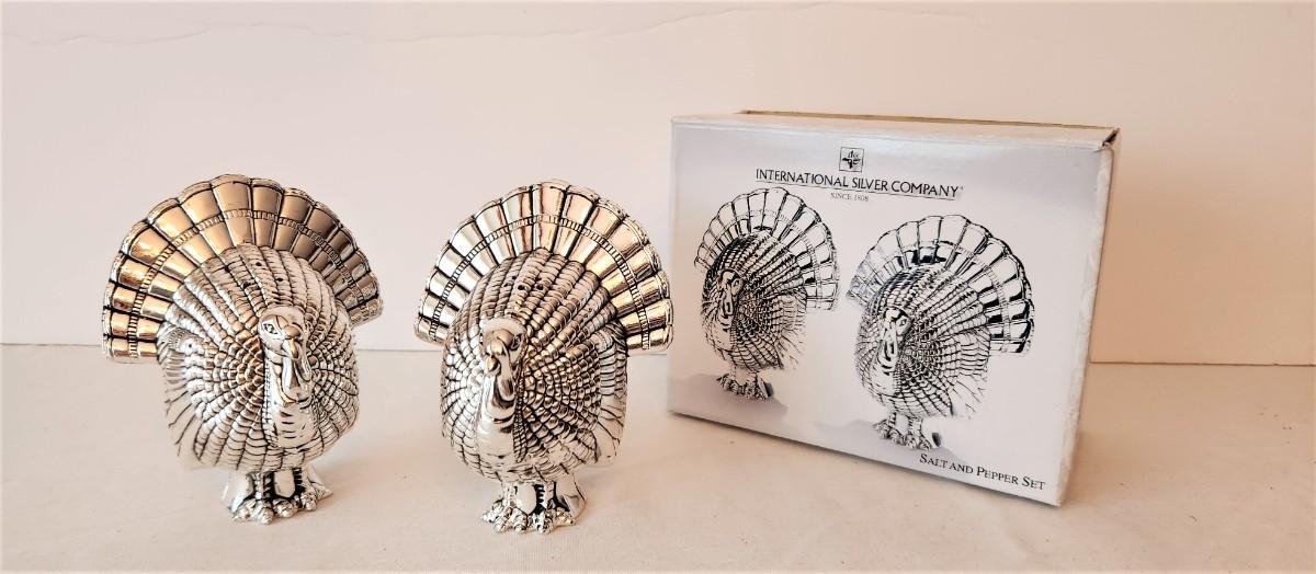Lot #94  International Silver Co - pair of silverplate Turkey Salt/Pepper