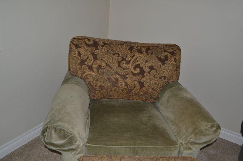 LARGE CHAIR WITH MATCHING OTTOMAN. GOOD CONDITION