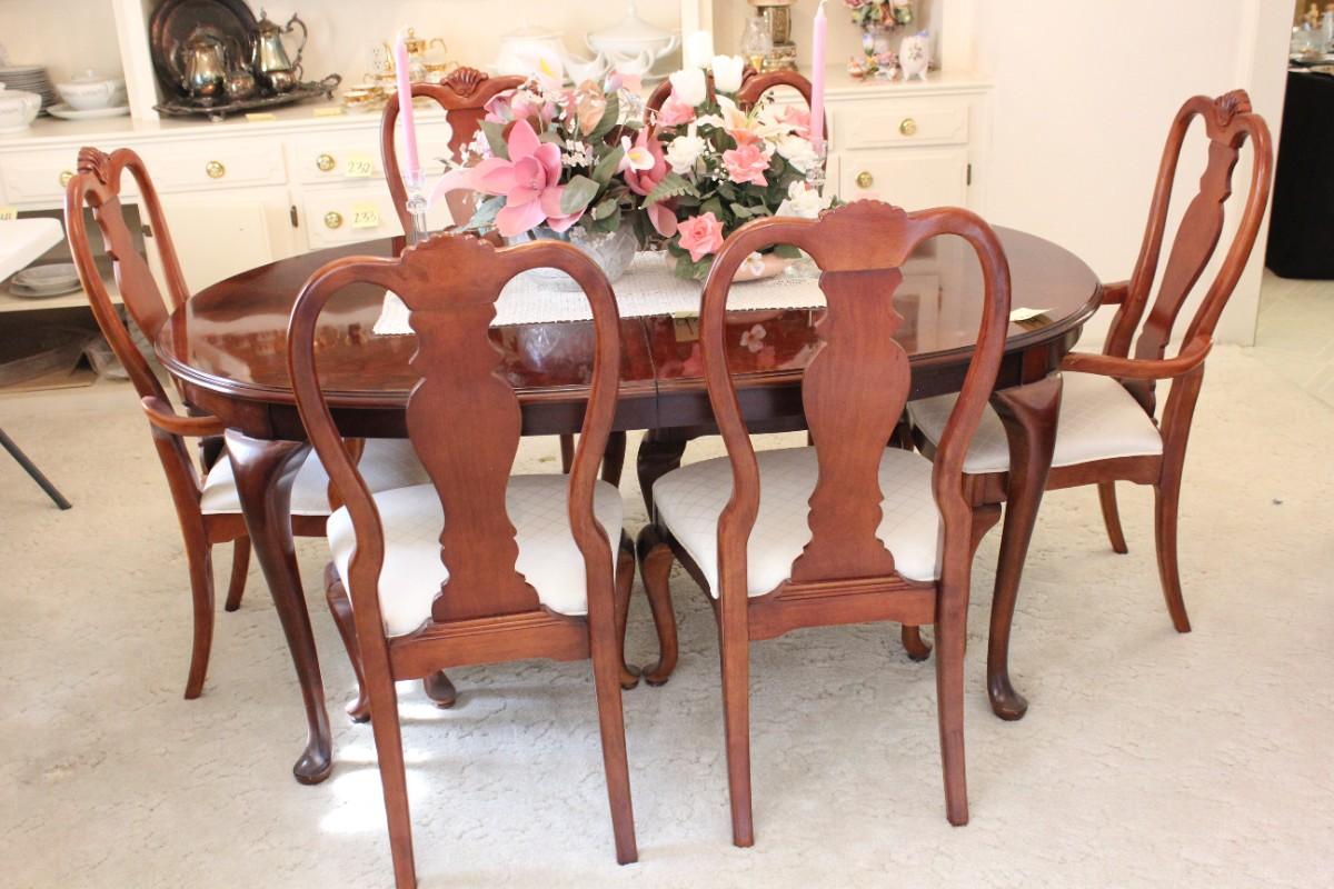 Lot 94 Mahogany Dining Set w/ 6 Chairs & 2 Leafs