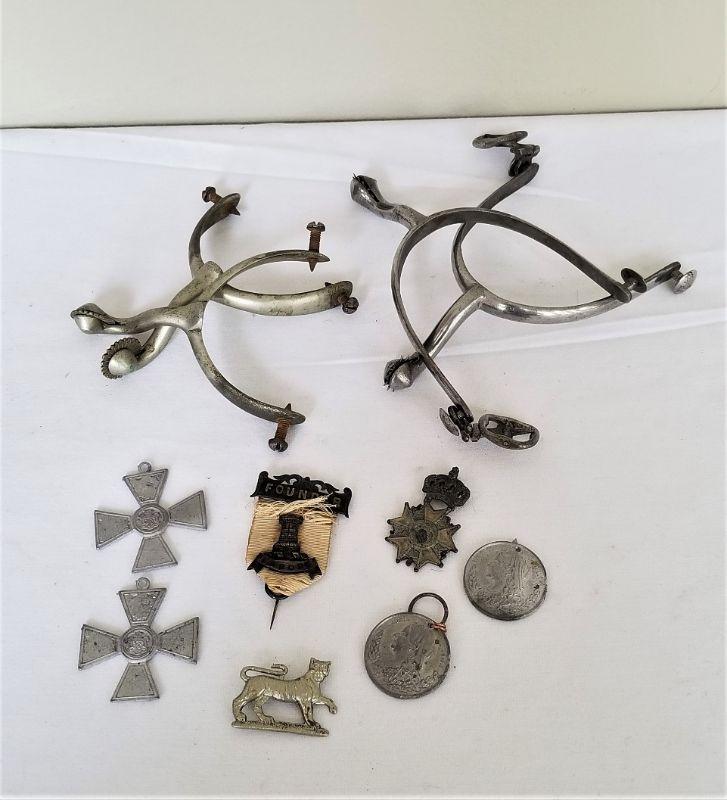 You get all you see here - two sets of spurs and several medals/castings. I have several photos so you can see close up. You be the judge.