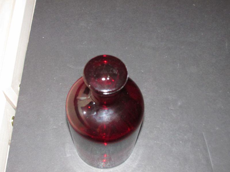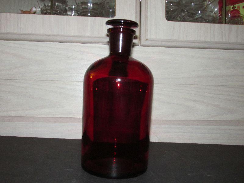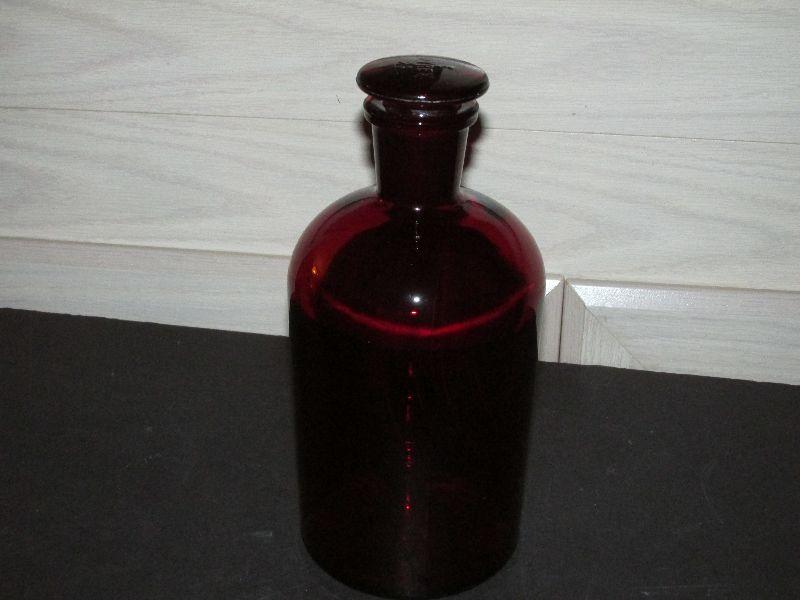 Pyrex Ruby Apothecary Bottle with stopper. No chips or cracks.