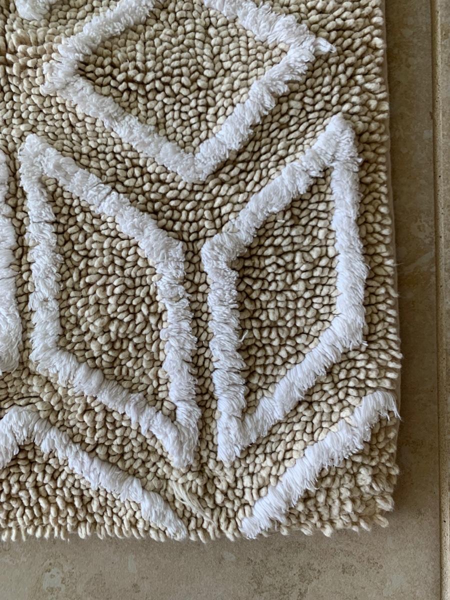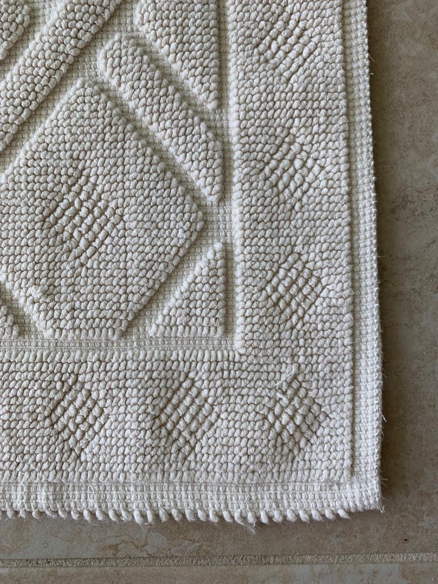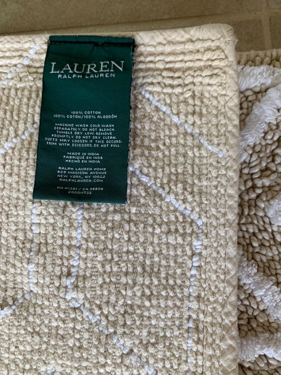 Runner measures 48" X 19" Lauren cotton bath rug measures 36" X 22"