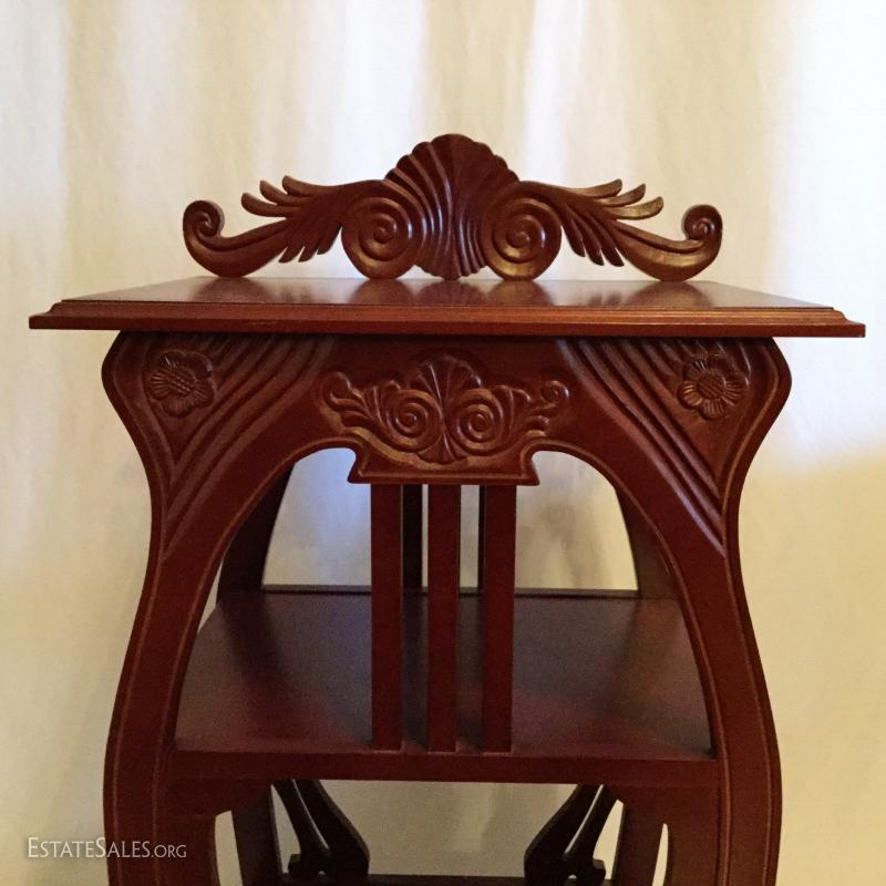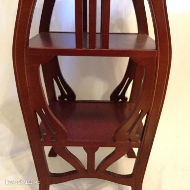 Three tiered, manufactured wood standing shelf: