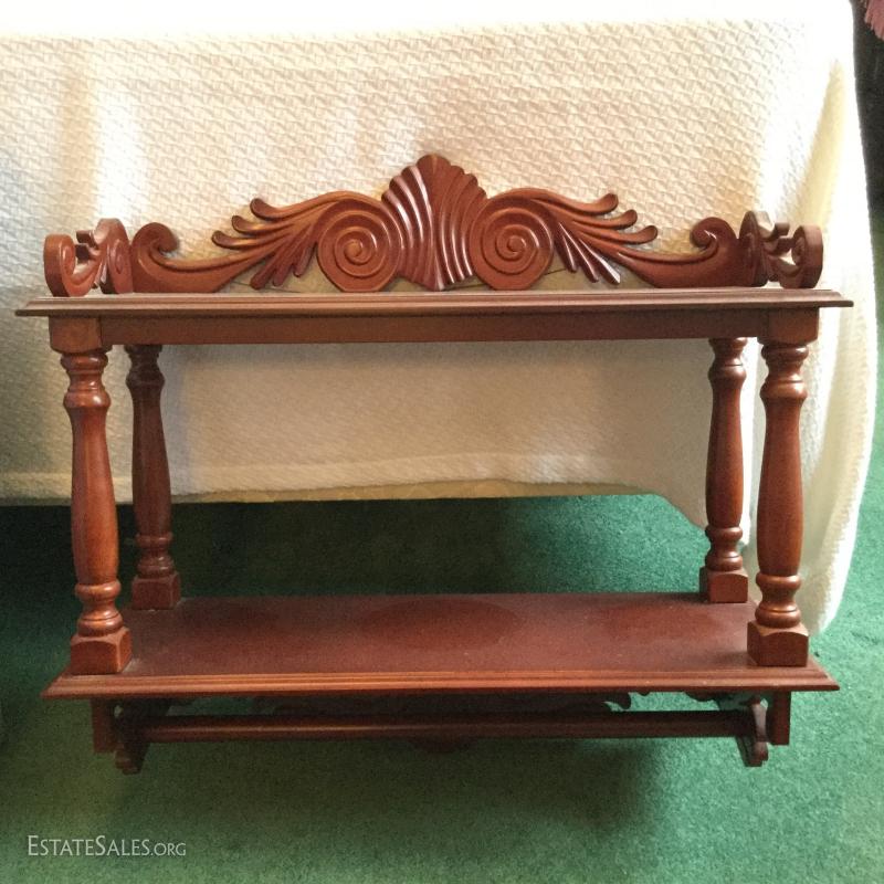 Wall shelf, manufactured wood with carved detail: