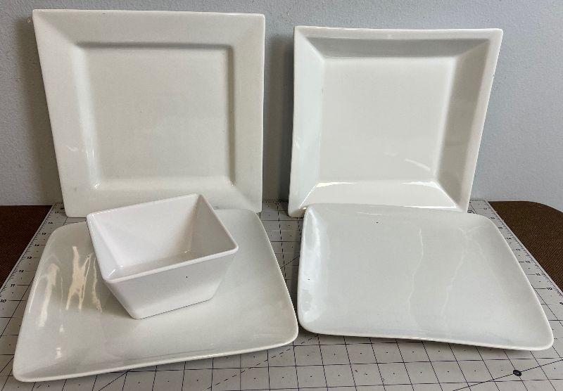 Lot #94 Square White Serving Plates and dishes