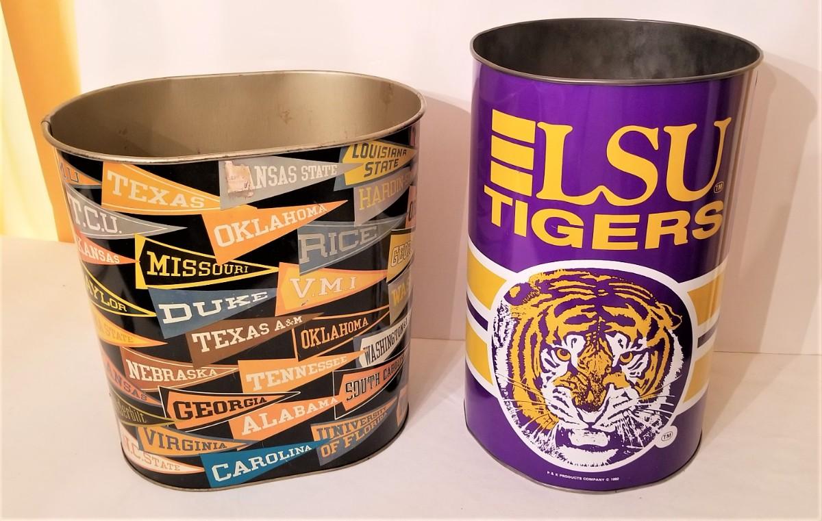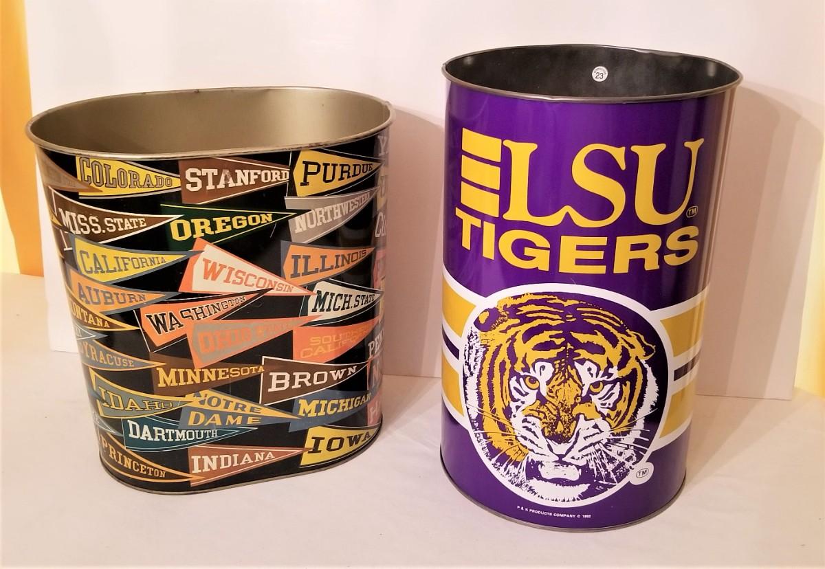 Lot #94 Two vintage metal wastebaskets with Team names, one LSU
